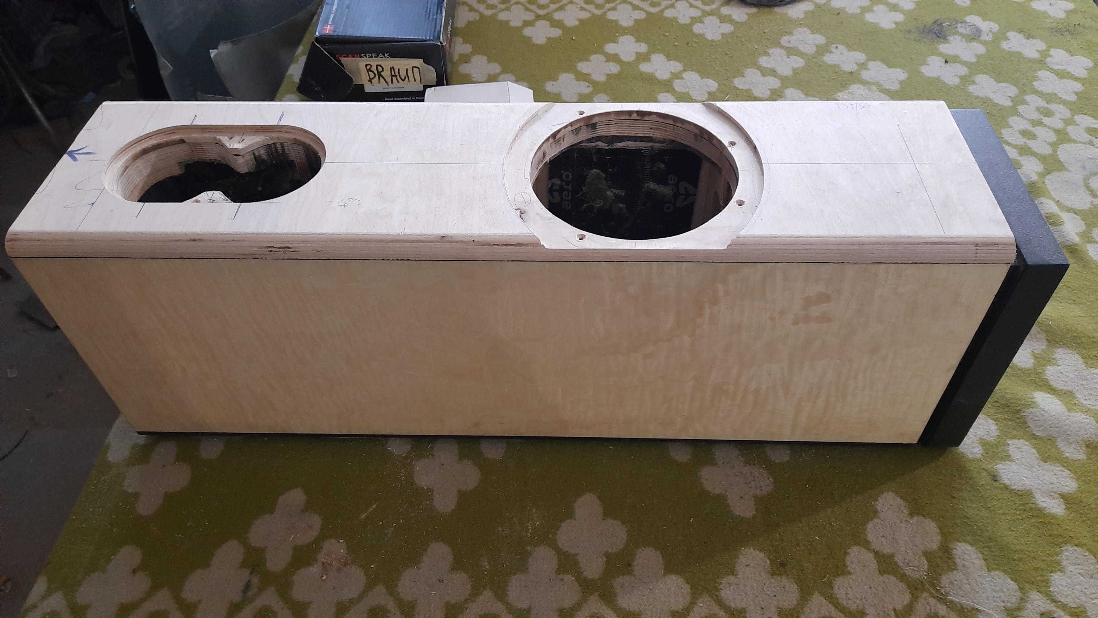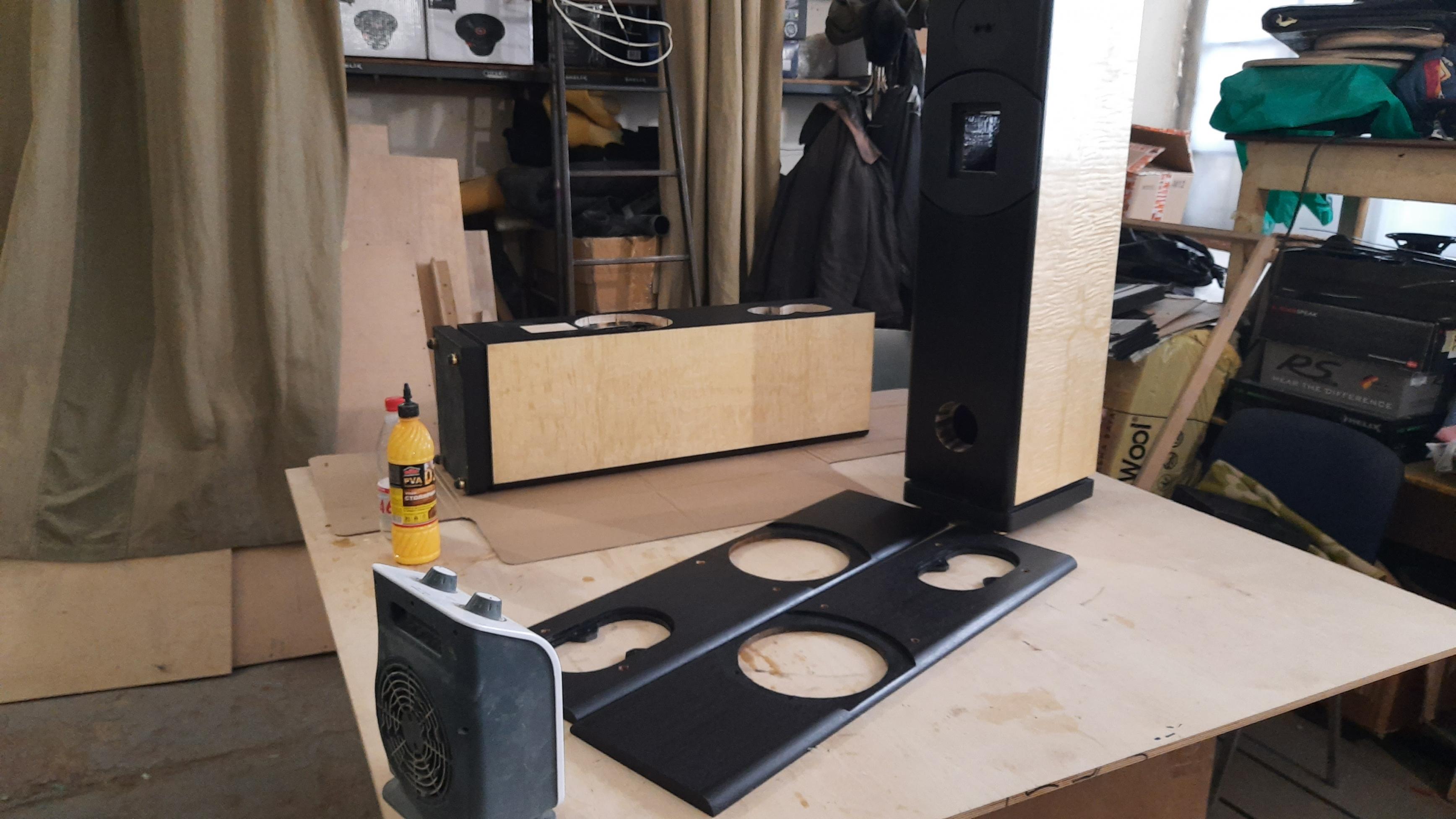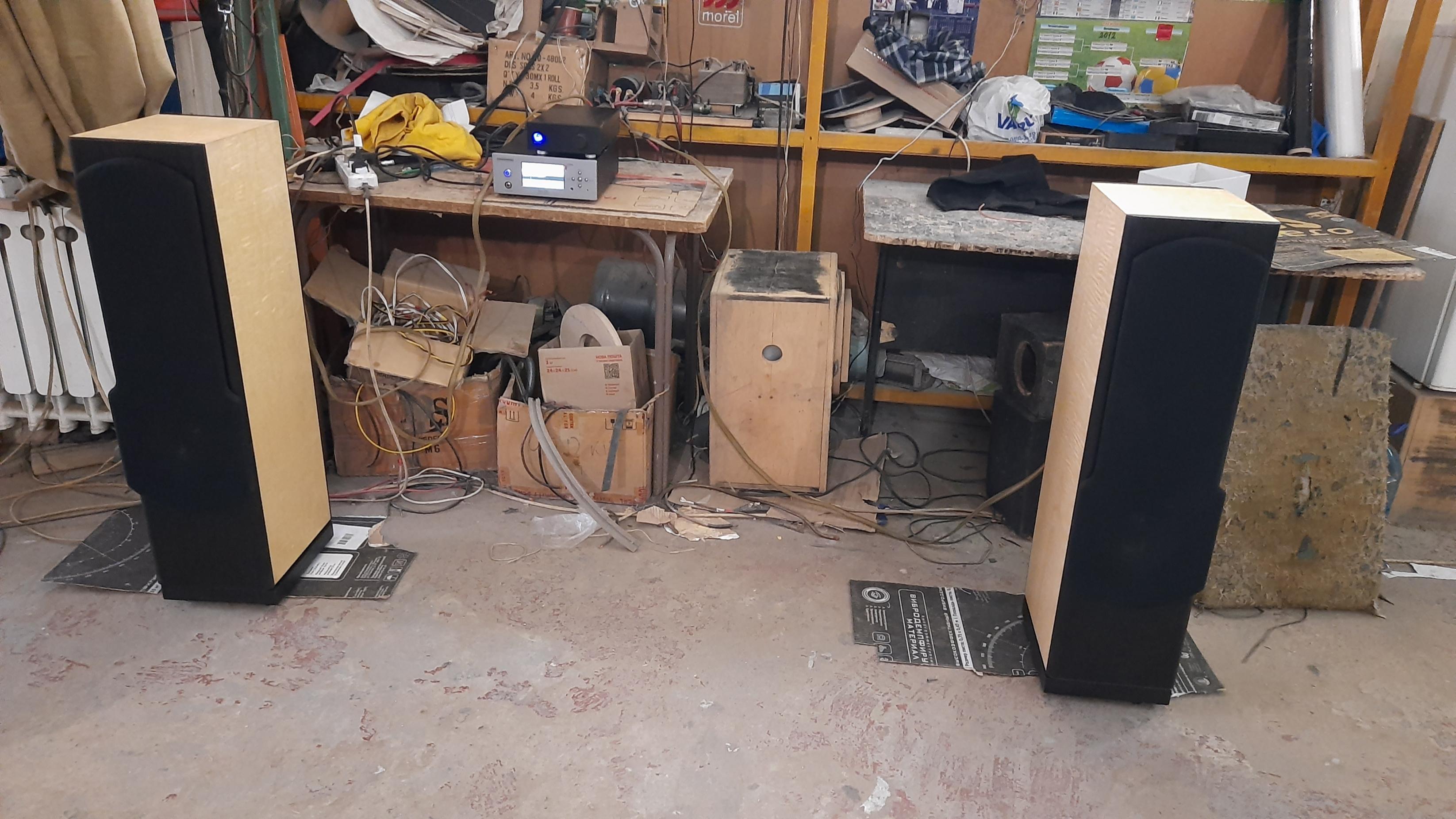 По согласованию с клиентом модернизировали НЧ блок наших АС Tower. Очень удачно..... Возможно использование в домашнем кинотеатре, поэтому добавили саб, И тут случайно другой клиент попросил прослушать, протестировать и по возможности отреставрировать авторские АС на базе советских динамиков ( 100ГДН и др.) Интересно было услышать и сравнить в одинаковой обстановке и обвязке. АС сделаны добротно, прочно ( внешнее оформление на любителя... ).Прослущивали только АС , без саба , естественно. Ну и первое, что услышалось...они ЗАМЕТНО громче играют, создают ощутимое звуковое давление... Напомнили мне....эстрадное ( ресторанное ) звучание))). Собственно, далее сравнивать было нечего...бас не глубокий....думаю не ниже 50Гц, фокусировка никакая, ну и т.д...Да и сравнивать было не корректно, цены на АС отличаются раз в 5 , а то и более раз... Их назначение, на мой взгляд, озвучивание помещений...для чего их, собственно, нам и надо подготовить...