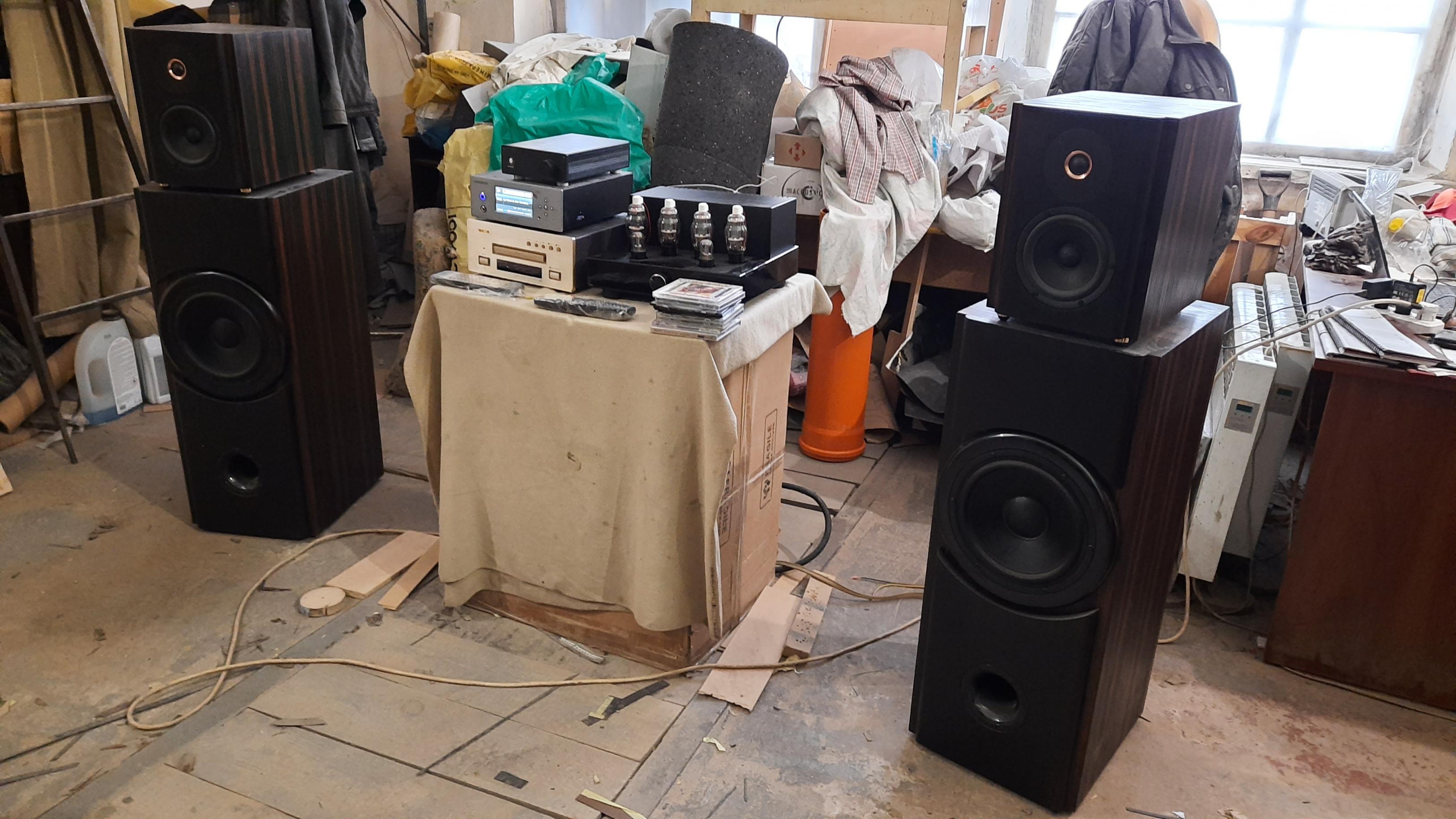Акустика размялась, немного подстроились и....прослушало 5 коллег ( правда, не из форума) . ОЧЕНЬ и ОЧЕНЬ понравилось звучание : мелодичное, живой вокал, ясное, чистое, не напрягающее, все время хочется слушать)))) и добавить громкости, особенно на ритмичных композициях...Звуковое давление ОЧЕНЬ приличное,бас бьют в грудь, собраный, артикулированный... С хорошим ламповым предваром ( а штатные лампы в нем заменил на Mullard ECC 83 c маркировкой Philips NOS(Blackburn 60-е года) . А ведь еще есть БОЛЬШИЕ резервы для дальнейшего улучшения качества звучания: замена кабелей питания и вилок обычных,штатных на качественные , слушали от средненького( по мерках системы) сетевого плейера, замена пасс кроссах конденсаторов на Jantzen Audio и др. В общем очень воодушевлен и оптимистичен ))) Но приглашаю еще слушателей....выслушиваю замечания....)))