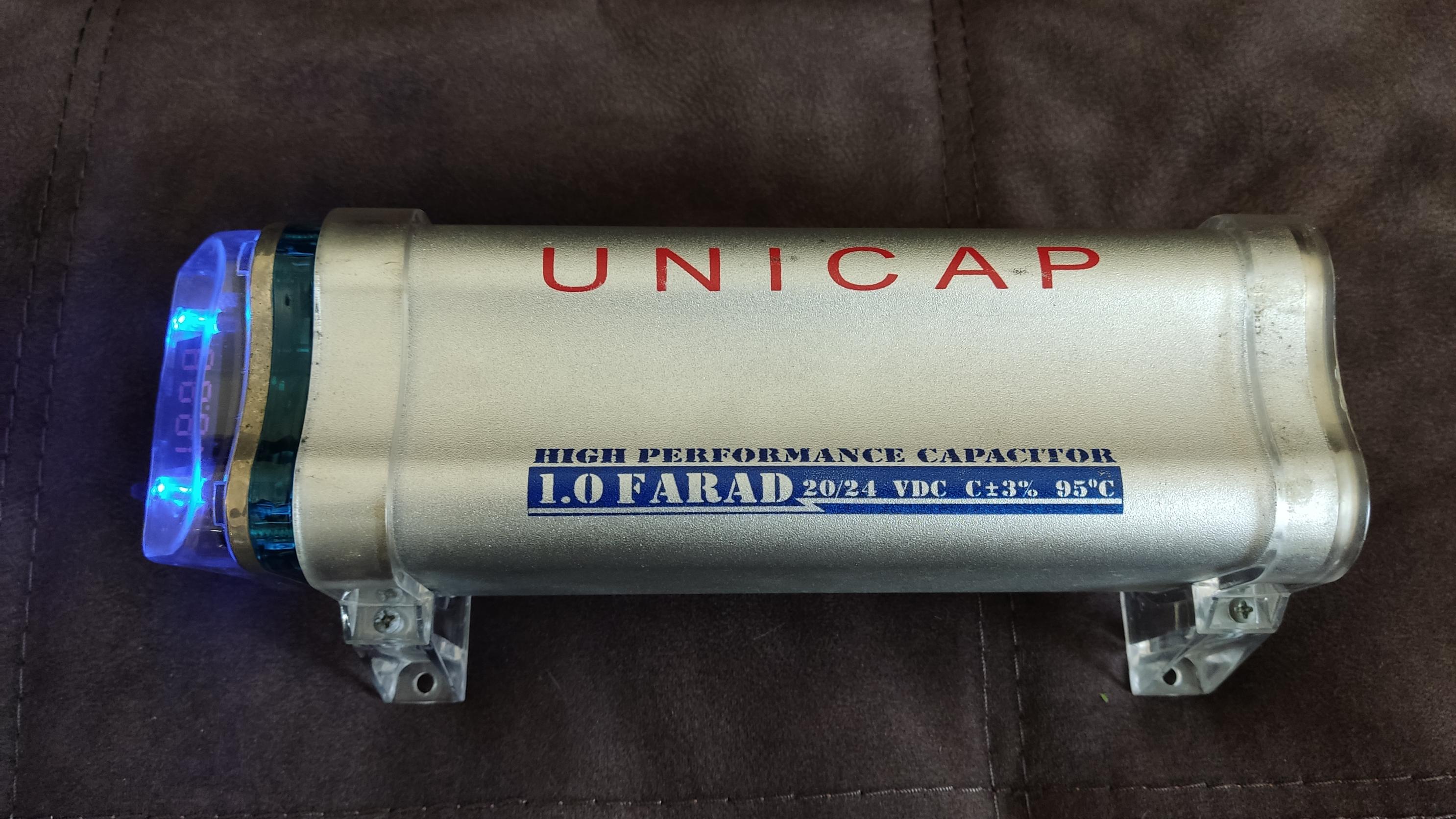 Продам конденсатор Unicap 1F с креплениями в отличном состоянии с вольтметром и подсветкой.