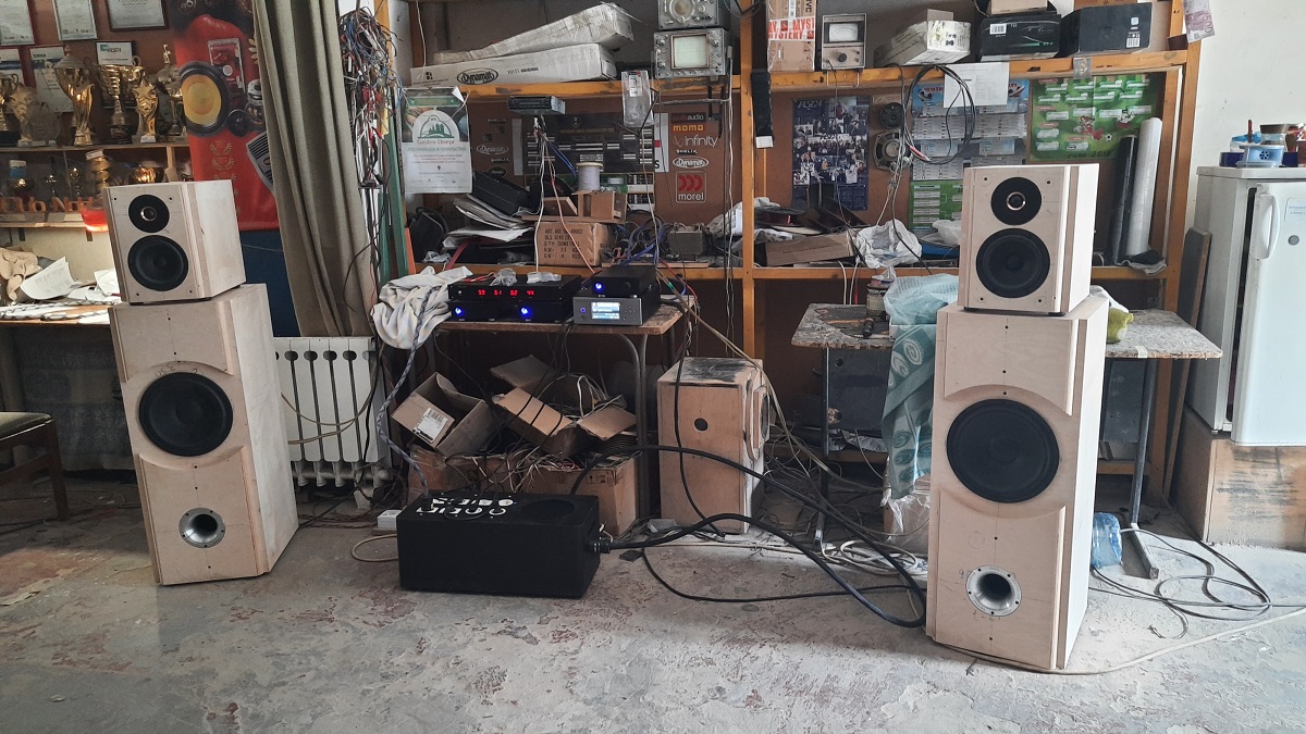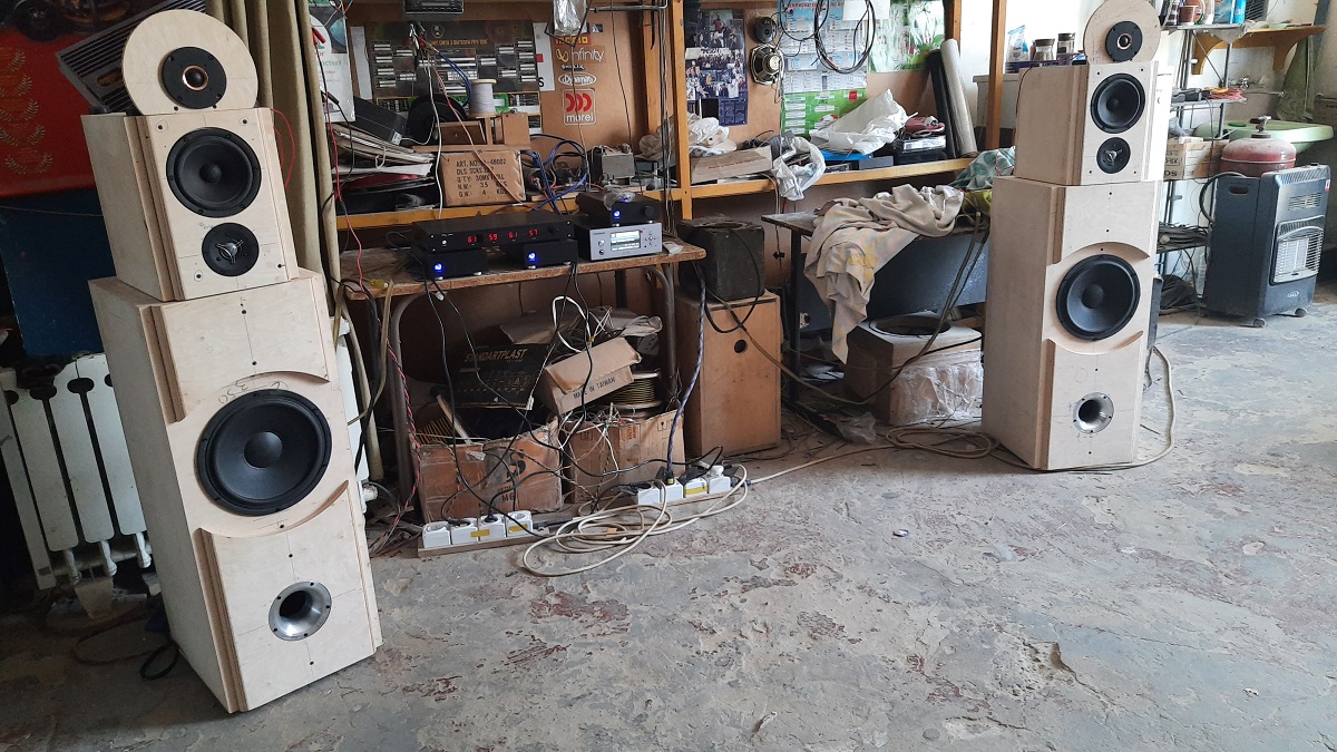 Проектирование и изготовление одной из самых наших удачных и интересных систем было начато перед войной, растянулось на несколько месяцев и завершилось уже в весной 2022г .Проект не был ни кем заказан, делался на свой страх и риск, но тем не менее с прицелом на 2..3 потенциальных покупателей. Общим у них был только размер помещения…около 30м2, поэтому изначально размер АС был выбран достаточно крупным ( общая высота АС примерно 135 см ) Это было весьма кстати, потому как на складе были отличные НЧ головки Scanspeak Discovery, требующие обьема не менее 100л. Пока приобретались комплектация, материалы, выполнялся раскрой фанеры, прорабатывались концепция, дизайн и др.., остался один потенциальный клиент. С ним мы работаем уже более 15 лет ( в наличии у него акустика Sonus Faber Concertino, усилитель Classe CAP100,источник сигнала портативный хайєнд плейер Astell&kern ), поэтому именно под его вкусы и желания сориентировали в дальнейшем проект аудиосистемы. Корпус классической формы, но разделенный на секции НЧ и СЧ /ВЧ,предполагающий любимый нами биампинг. Фронтальная и задняя стенки – фанера 42 мм, боковые -21мм, внутри мощные перегородки для жесткости. Фазоинвертор с расчетным F ( -3dB ) = 30 Hz. |