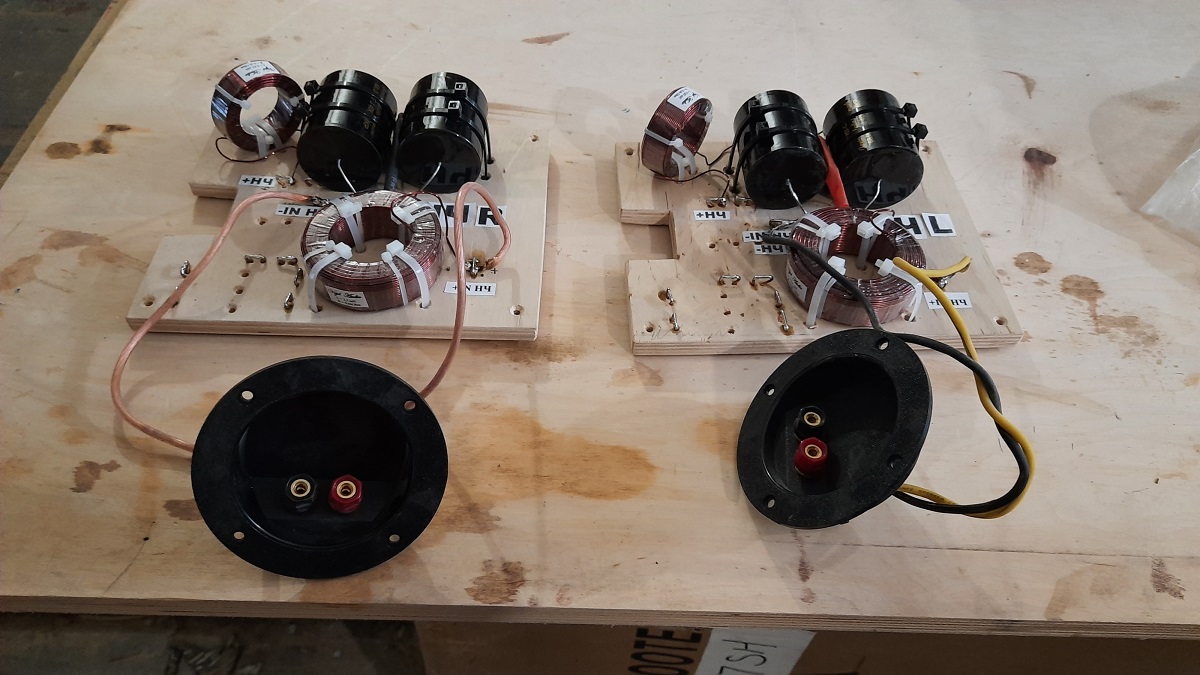 СЧ / ВЧ секция размещается в 15 л обьеме, чтобы акустически не поджимать снизу СЧ диапазон. На складе давно ожидал своего времени отличный топовый шелковый твиттер Seas Millenium и вот оно пришло. Заказчик очень любит и знает классическую иузыку ( ранее периодически посещал Вену слушать в оригинале ) , джаз ,ну и старый добрый рок.Среднечастотники : практически всегда в 3х полосках применяли 5-ти дюймовые головки, но в этом проекте решили применить 6,5 дюймовые. В наличии оказались интересные динамики из другого проекта и была возможность прослушать их .В корпусах без отделки установили динамики ( заодно сравнили шелковые Seas Millenium c бериллиевыми SB Acoustic ), с помощью процессора и поканалки отстроились,выбрали наилучший вариант фильтров, частот раздела и др., Рассчитали номиналы компонентов пасс кроссов, собрали их предварительно на элементах Monacor.Подстроились, прослушали…. Дуже чудово, очень интересные тембры привнес СЧ динамик, ну и с учетом вкуса заказчика остановились на шелковых ВЧ.