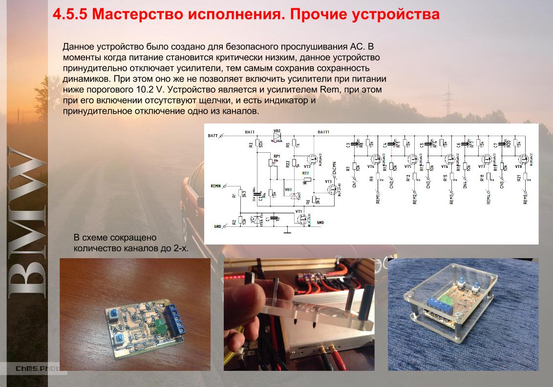 Настройки, углы, расположение, со всем играл, много чего пробовал, всё таки решено — есть проблема в железе… С источником вопрос закрыт (Clarion Hx-D2), ну нравится, остаётся. Отправлен был Михаилу Послыхалину просто на ревизию, всё хорошо, почистили, всё хорошо. Проблема блоков питания клары тоже решена, ёмкости заменены, короче с ГУ и акустикой вопрос закрыт, так же как и с местами для установки. Собственно помимо проводов и усилителей больше и вариантов нет. ну начнём с последнего. СЧ-ВЧ тракт. Ох уж эти полосы, воздух, детальность, разрешение, короче говоря было больше 6-ти усилителей, и пионер который перед одр, и феникс 4-х канальный старый титаниум, синфони амплитуд… короче говоря с форума нашёл красавца Genesis four chanel. вооот оно, вот он компромисс, тут было всё, что нравилось в каждом из предыдущих только в отрыве от остального… Детальность как на сифоне, музыкальность как на пионере. И тут, со всех сторон- -" это ты ещё его не слышал в твике" -" ну не слышал — значит услышу". Как всегда к проверенному человеку, звоню Михаилу -отсылаю ? -отсылай, а что отсылаешь ? Выслал, задание было не сложное, вырезаем кроссоверы, вместо них (вернее на их место) становятся поканальные гейны, их после сифона не хватало на дженезисе, замена ОУ, короче не нужное повытряхивали, нужное всунули. Потом получаю письмо : — Привет. Артем! Усилитель я сделал. Вчера выслушивал… и что-то меня берут сомнения — уж больно он хорошо начал играть. Иногда очень хорошо — не есть гуд. НУ всё, радости полные штаны, получил поставил… Вопрос с сЧ и ВЧ пока закрыт, далее более точная настройка, а там будем слушать. Мидбас— к нему цеплялся больше всего. НУ что в системе повозил — Steq k2.01 — атака дикая, но после удара, такое ощущение (вот как при игре на гитаре, что ударили по грифу а потом руку положили на струны). Короче атаки много, а больше ничего — Sinfoni amplitude 90.2 — настолько высушенный мидбас, что ну не привык такое слушать, включаешь что то агресивное и всё, мидбас мыльный, никакой точности и контроля — Pioneer A -какой то, ну тут красиво играет особенно всякие тестовые композиции, но опять же чуть дал ему, атаки нет, пропадает напор. — Sinfoni aplitude 150.2 чуть больше атаки чем у 90го но опять же, сухой присухой бас — и тут знакомый даёт попробовать покататься phoenix gold titanium 400.2 — у меня ступор, давай, продавай, а он ни в какую… это и атака, и скорость, и музыкальность, любая громкость, любой жанр… упрашивал, просил, нет и всё. Понимаю что надо искать, на Украине просто не было смысла… Польша — нет, Германия — нет, почему ? Америка — фух, нашёл, аукцион, да ладно какой аукцион — забираю. Пересылка, помомойму полтора месяца, да он у меня ! да и не просто 400.2 а 600.2 =))) Тут можно почитать о нём более подробно www.avtozvuk.com/az/2001/08/p68-71.htm Сабвуфер — всё по прежнему, на нём стоит и трудится малышь Sinfoni amplitude 150.2 — да сухой, чистый, ровный по подаче усилитель. Поэтому пусть пока постоит, дальше крутим, посмотрим что с этого выйдет… |