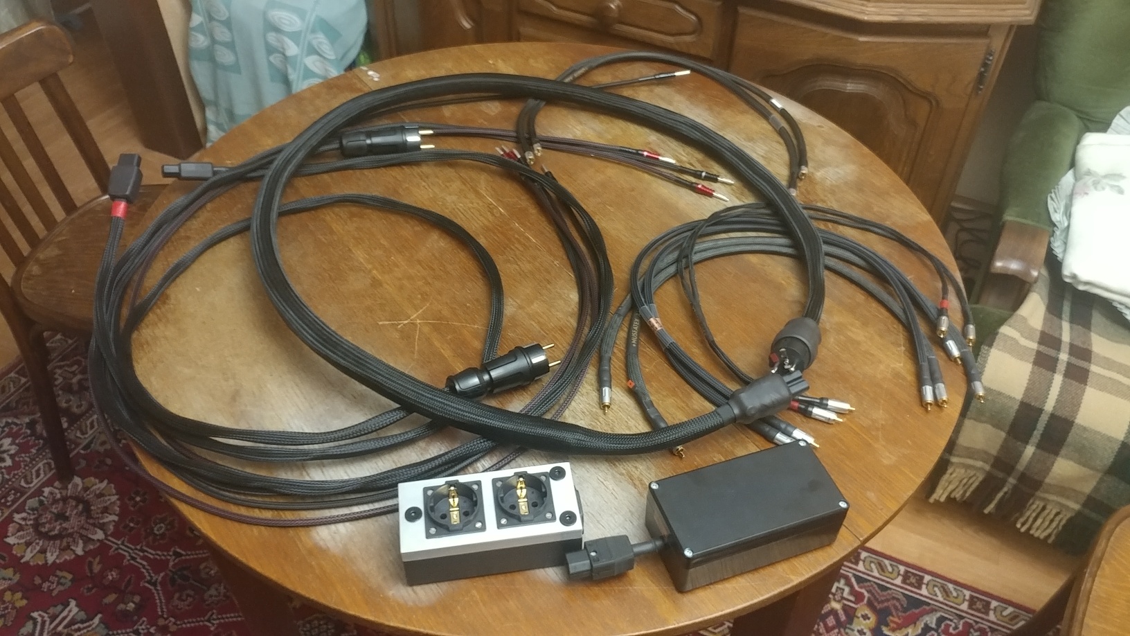 Получил кучу разных кабелей авторского происхождения ( акустические, межблочные, силовые ) , исполненные на ОЧЕНЬ высоком уровне , из ОЧЕНЬ качественных материалов, и имеющие массу положительных отзывов от пользователей. Приступил к прослушиванию и сравнению с имеющимися в системе.... Для скрупулезного анализа и сравнения всех вариантов нужно безумно много времени,поэтому ограничусь лишь выявлением явно слышимой и заметной разницей в звучании... Отмечу сразу , что кое чему ранее не уделял должного внимания.... |
