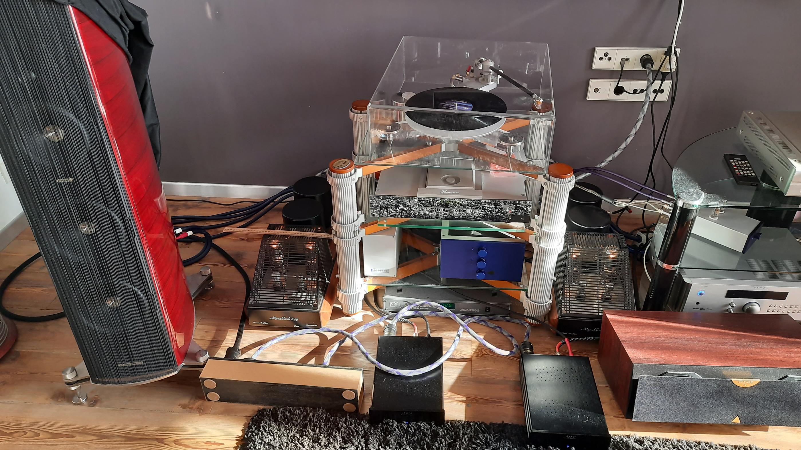 - акустика Sonus Faber Homage Amaty Tradition Red - предвар Acoustic Plan Sarod - ламповые моноблоки Mastersound Monoblock 845 , ну и т.д. по восходящей.... Не совсем удовлетворяли хозяина....структура баса, глубина, недостаточный его уровень. Были также пожелания улучшить фокусировку, локализацию образов. Прежде чем принять окончательное решение по апгрейду, были прослушаны несколько вариантов. Во время прослушивания последнего варианта через несколько минут после начала звучания тестового трэка хозяин буквально заулыбался....вот оно, то что желалось))) В итоге получилось следующее: - межблочный RCA аналоговый кабель Fadel Art Coherence c предвара на ламповые моноблоки был заменен на изготовленный нами кабель XLR/2RCA ( кабель Acoustic Revive Line-X Triople-C, разьемы VDH и Oehlbach ) - фирменный акустический кабель Bi-wire доработали в вариант Bi-amping - добавили моноблоки D-Class Рном = 500вт для НЧ канала Изменили подвод питания : теперь используется качественный дистрибьютер собственного изготовления на 5 розеток ( кабель Fujikura 3 x 8 mm2, вилки Neotech Rhodium ). От него питаются все моноблоки и сюда включен имеющийся стабилизатор для слаботочных компонентов. В последствии будет заменена на высококачественную стенная розетка и изготовлена аппаратная стойка для размещения аппаратуры. Что сказать, звучание кардинально изменилось: появился четкий, упругий, рельефный, глубокий бас, Образы сфокусировались, четко локализовались. Вцелом снизились искажения в звуковом материале...все таки сигнал с балансного выхода более качественный!!! |