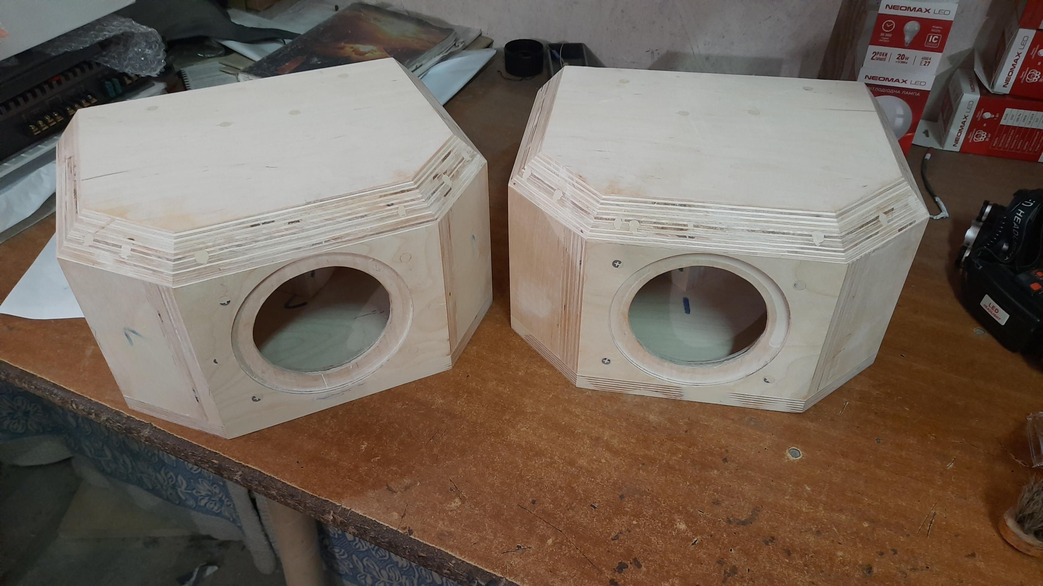 Корпуса наконец то отшлифованы ( крайне сложная и трудоемкая работа) и подготовлены к нанесению шпона. Получена вся комплектация для пасс кроссов. Отслушаны НЧ боксы и на данном этапе принимается вариант ЗЯ, очень достойно звучит... Продолжение выбора вариантов ...после изготовления и стыковки с ВЧ/СЧ секцией.... |