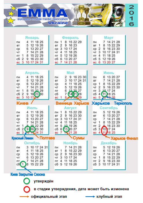 Календарь ЕММА-Украина Сезон 2016 по состоянию на 01.04.2016