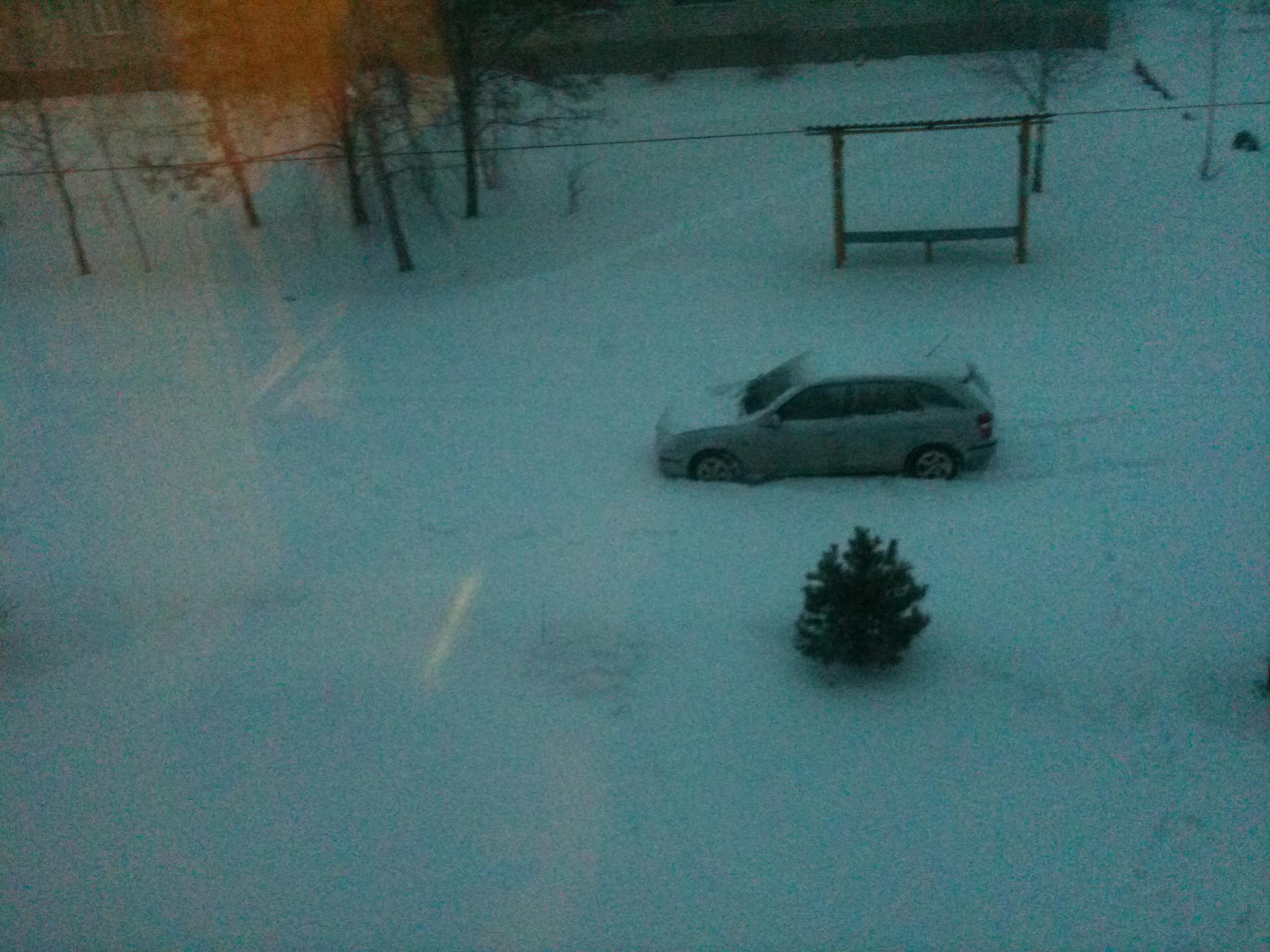 Приехал после работы в пятницу....теперь на месте где моя Маздень стояла огромный шар снега...дорогу под дом даже трактором чистили, так что катаюсь даже в ети дни