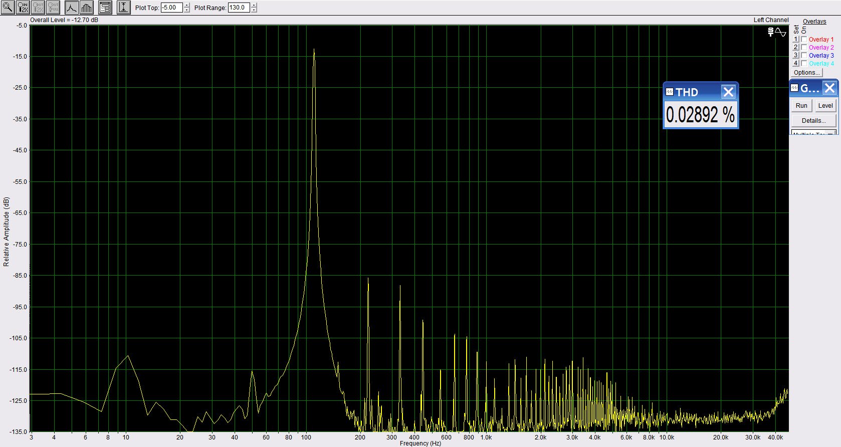 Однако, когда я открутил крышку, чуть не упал в обморок. Это первый усилитель, в котором вентилятор обдува приклеен термоклеем к крышке! Подробное изучение топологии, схемы и монтажа также принесло немало разочарований. Такое впечатление, что этот усилитель производится любителями – самоучками, а не итальянскими мастерами звука. Плата разведена халтурно, расположение элементов не поддаётся никакой логике. Посмотрите на катушку входного фильтра: она не только расположена над деталями преобразователя, но и под ней закручена гайка крепления платы. Попробуй, открути! Крепление платы в трёх точках нельзя назвать достаточным. Угол с силовыми выходными транзисторами ничем не закреплён, плата проседает и может коротнуть на корпус. Силовые транзисторы. Такое впечатление, что одну пару поставили сразу, а вторую добавили сбоку позднее. Кстати, корпус. Это единственный усилитель, у которого корпус соединён с общим проводом входных RCA разъёмов, с аналоговой массой. Значит, усилитель нельзя крепить к кузову автомобиля – полезут наводки. Входные фильтры выполнены на микросхемах TL082. Вполне себе средненькие мыльные операционники. Построение усилителя своеобразно: двухкаскадный усилитель напряжения со своей обратной связью и повторитель со сдвоенными полевиками на выходе. Качество звука на первый взгляд неплохое. АЧХ соответствует ТХ. Но ток покоя, равный нулю, дают хороший забор высоких гармоник. Как лечить будем? Задача следующая: Усилитель для мидбасов в трёшку. Перестроить входной фильтр до частоты 150-200 Гц. Улучшить звук, не перебирая полностью схему. Заменю я входные операционники на нормальные NE5532. И звук полегче, и цена не кусается. Конденсаторов в цепи сигнала два, но качество их хорошее, замена не требуется. Вот если от них СЧ-ВЧ –диапазон нужен, тогда всё под замену. Фильтр низких частот второго порядка, как выяснилось из измерений, Линквитца-Рили, перестроить легко. Заменил два конденсатора на подобранные с точностью более 1% и всё получилось. Ага, вот положительный момент: предварительные каскады питаются повышенным напряжением, аж +-52 вольта. Это хорошо. Изолирую корпус от платы усилителя. Теперь есть выбор точки заземления: шасси автомобиля, минус питания, общий провод усилителя (- клемма динамика). Также пришлось изготовить изолирующую прокладку под плату для устранения возможности замыкания. Настрою тщательнее выходной каскад: ток покоя и ноль на выходе можно регулировать. Даю прогреться час – полтора под нагрузкой, подстраиваю ещё раз. Вот и забор гармоник уменьшился. Звук стал намного легче, больше деталей, прорисовка баса радует, атака отличная, компрессии нет. Нормально. После прослушивания, конечно, многие негативные моменты конструктива ушли на второй план. Итальянцы умеют делать музыкальные вещи. Звук этого усилителя оказался на редкость музыкальным, раскованным и радуюшим слух. Вот АЧХ переделанного в сравнении с родным фильтром. Частота ФНЧ теперь может изменяться до150 Гц. Вот искажения переделанного 110Гц: Искажения переделанного 1 кГц Отдельно о настройке входного фильтра. Для этого понадобится Спектралаб в режиме стерео, измеряющий «Complex transfer Function Left/Right” (легче по английски написать, чем перевести). Выдаём с генератора белый шум и видим гладкую АЧХ и ФЧХ системы. Точка настройки фильтра второго порядка будет 