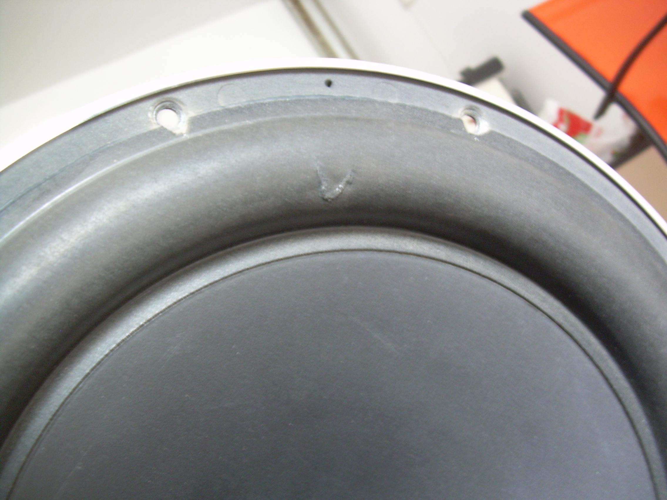 На сабе есть не большой косяк, получен еще при установке более года назад, см.фото. Все это время играет безупречно. На звук не влияет некоем образом, только на внешний вид. Со внутренней стороны заметен совсем чуть-чуть, т.к. подвес весьма толстый. Для оперативности: т.096-434-43-46 |