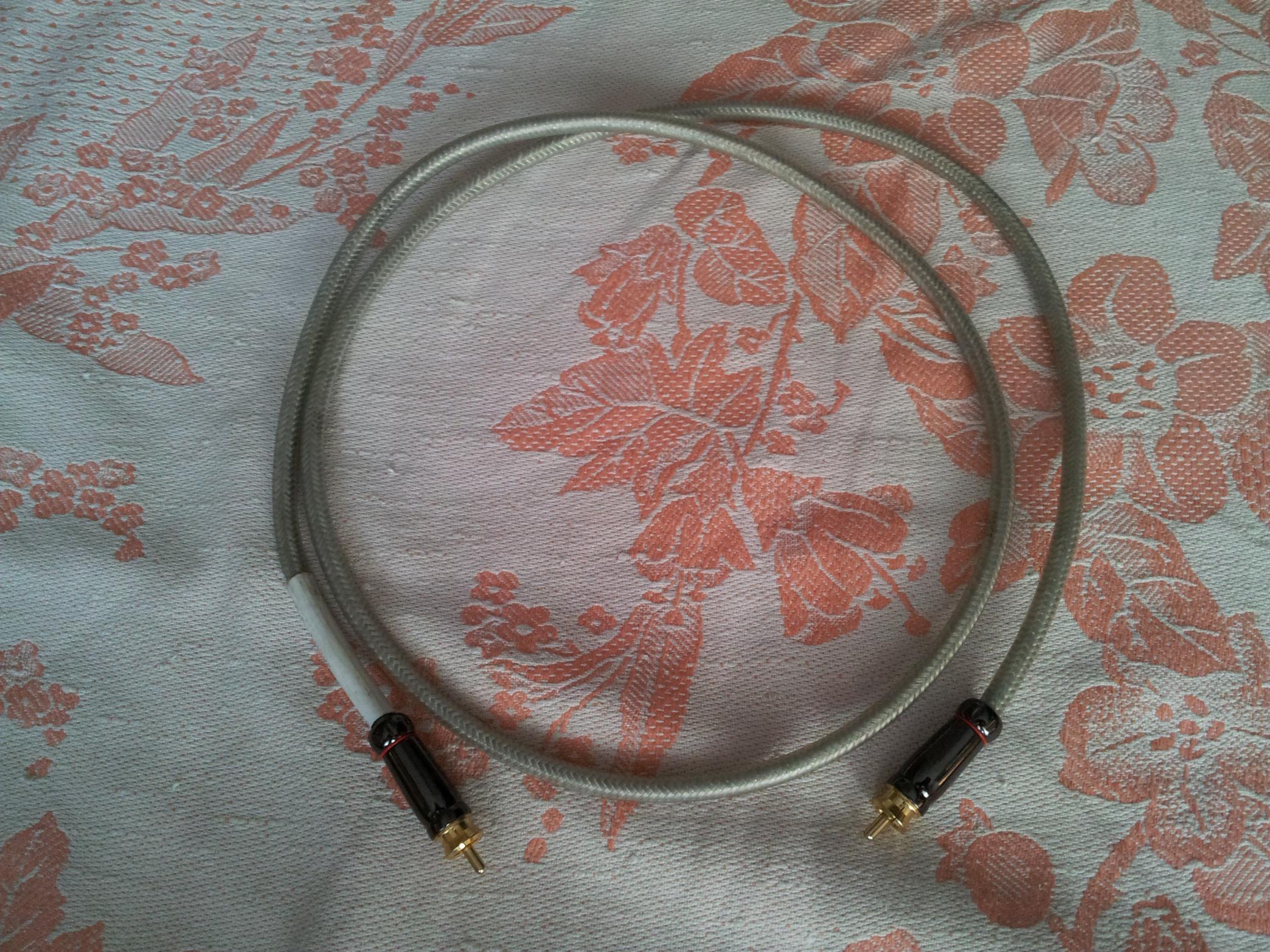 Продаю межблочный кабель (1 шт) Synergistic Research AV Matrix. Кабель производства США, центральный проводник - посеребрённая моножила. Длинна кабеля 1*1,4 метра, RCA коннектора - MT Power Diamond. Пайка кабеля произведена серебросодержащим припоем Tchernov Audio.