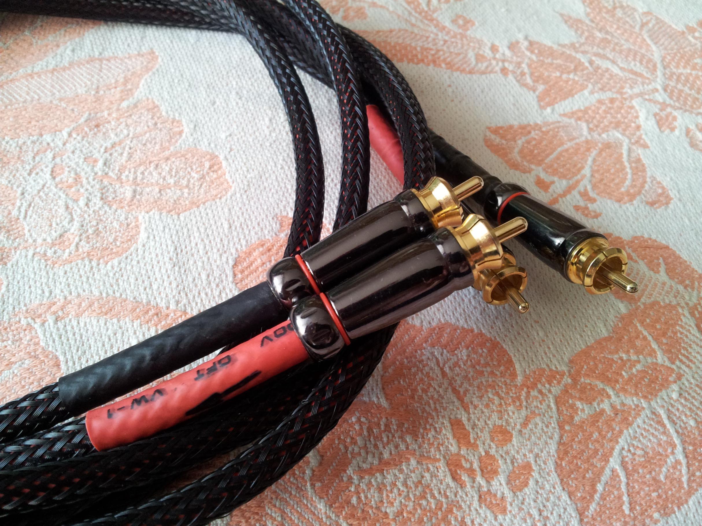 Продаю комплект межблочных кабелей Silent Wire NF 5. Кабель производства Германии и выполнен из посеребрённой меди. RCA коннектора - MT Power Diamond. Длинна кабеля 2*2 метра. Пайка кабеля произведена серебросодержащим припоем Tchernov Audio.