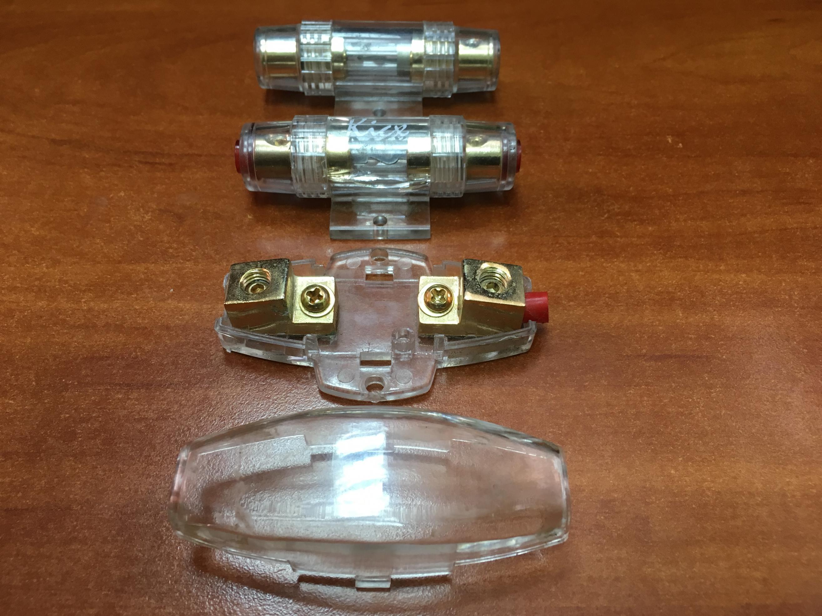 Продам держатели предохранителя 2 штуки agu с предохранителями на 60Ам и один под mini anl без предохранителя. До укомплектую предохранителем mini anl на 80 Ам и добавлю 2 запасных agu 60Aм