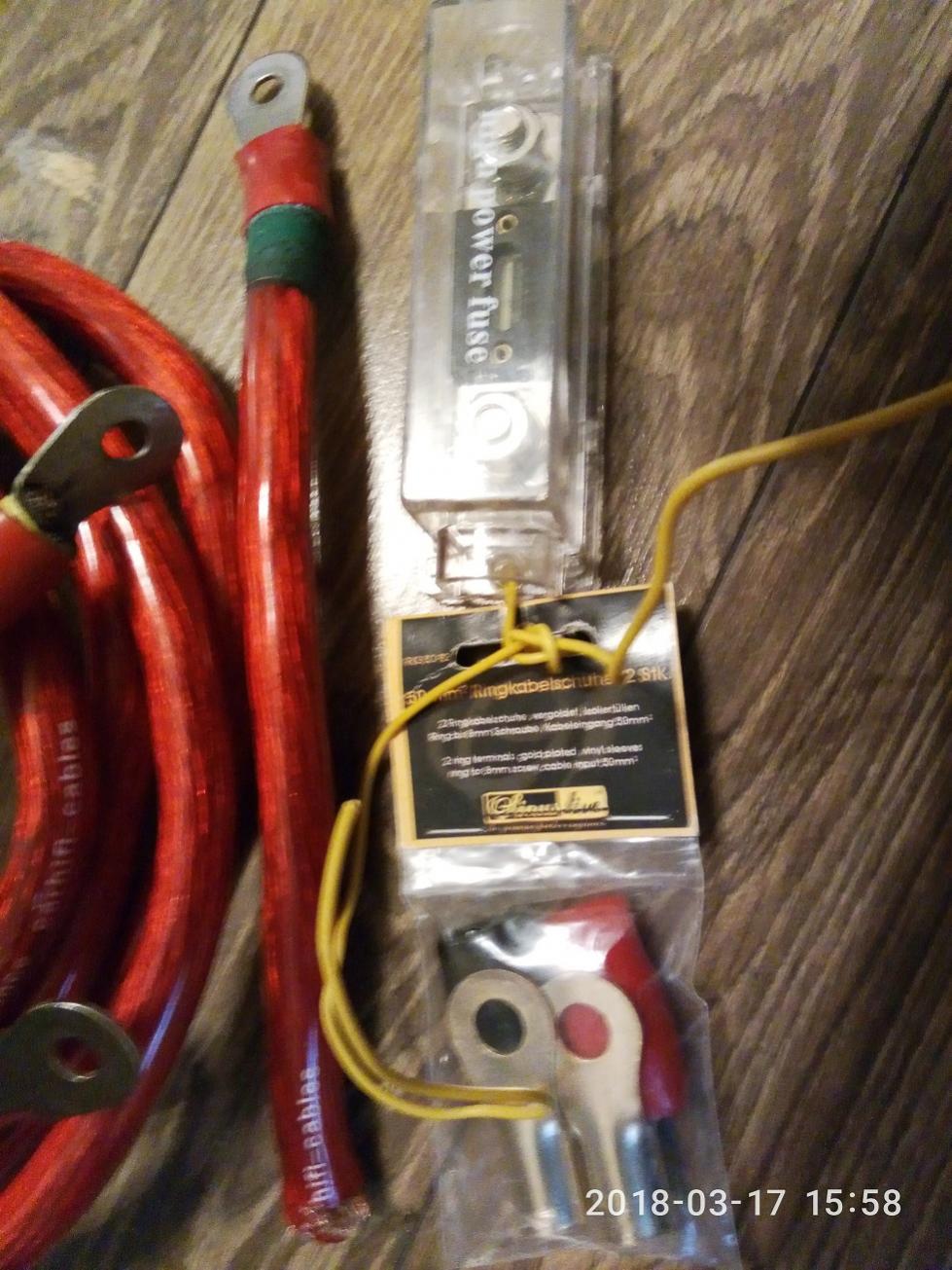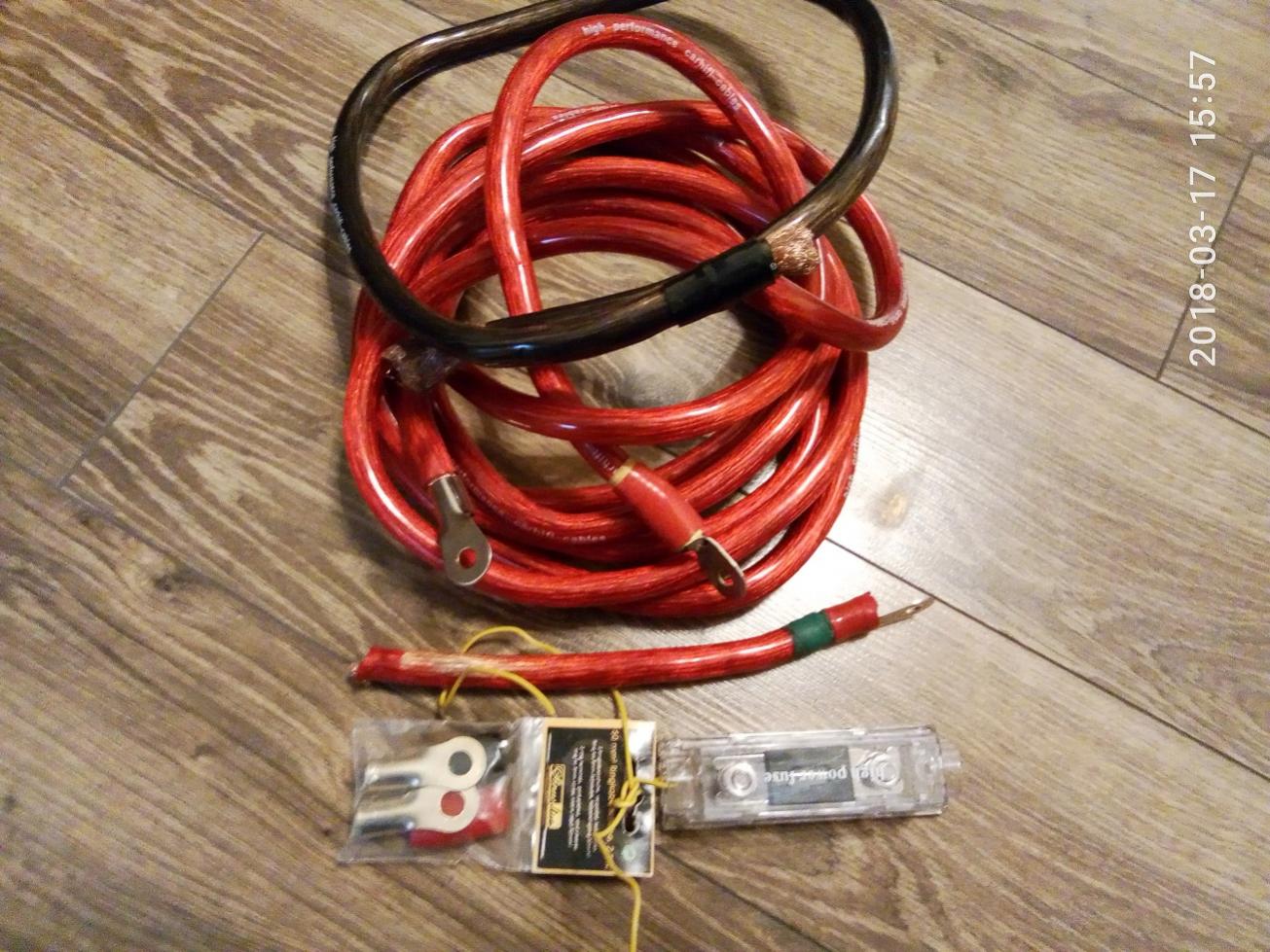 Продам комплект проводов 50 квадратов.5 метров красного(+).1 метр коричневого(-).Провод медно алюминиевый. Очень много жил. Мягкий.Колба с предохранителем 100 ампер ANL.И две клеммы SINUS LIVE 50 квадратов.Цена за все 750 гривен.тел.095-5О3-О2-О3. О68-272-28-О3 Саша.