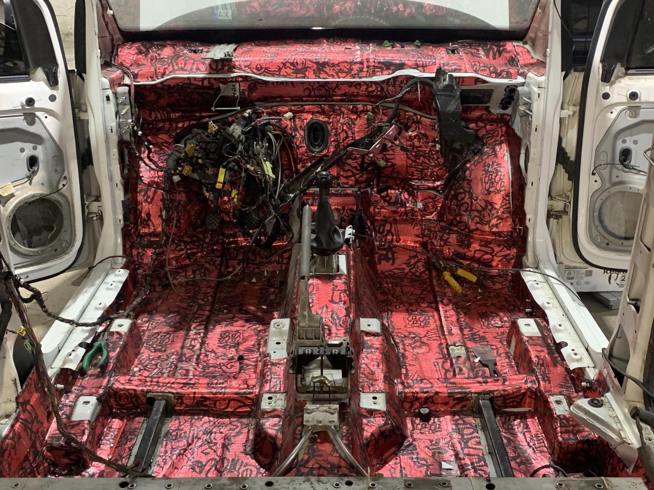 Первый этап работ - это демонтаж всего салона, снятие старой ШВИ которая не годится под наши задачи. Вместе с этим снятие бамперов, будут заменены, машина будет не только внутри интересной но и снаружи.