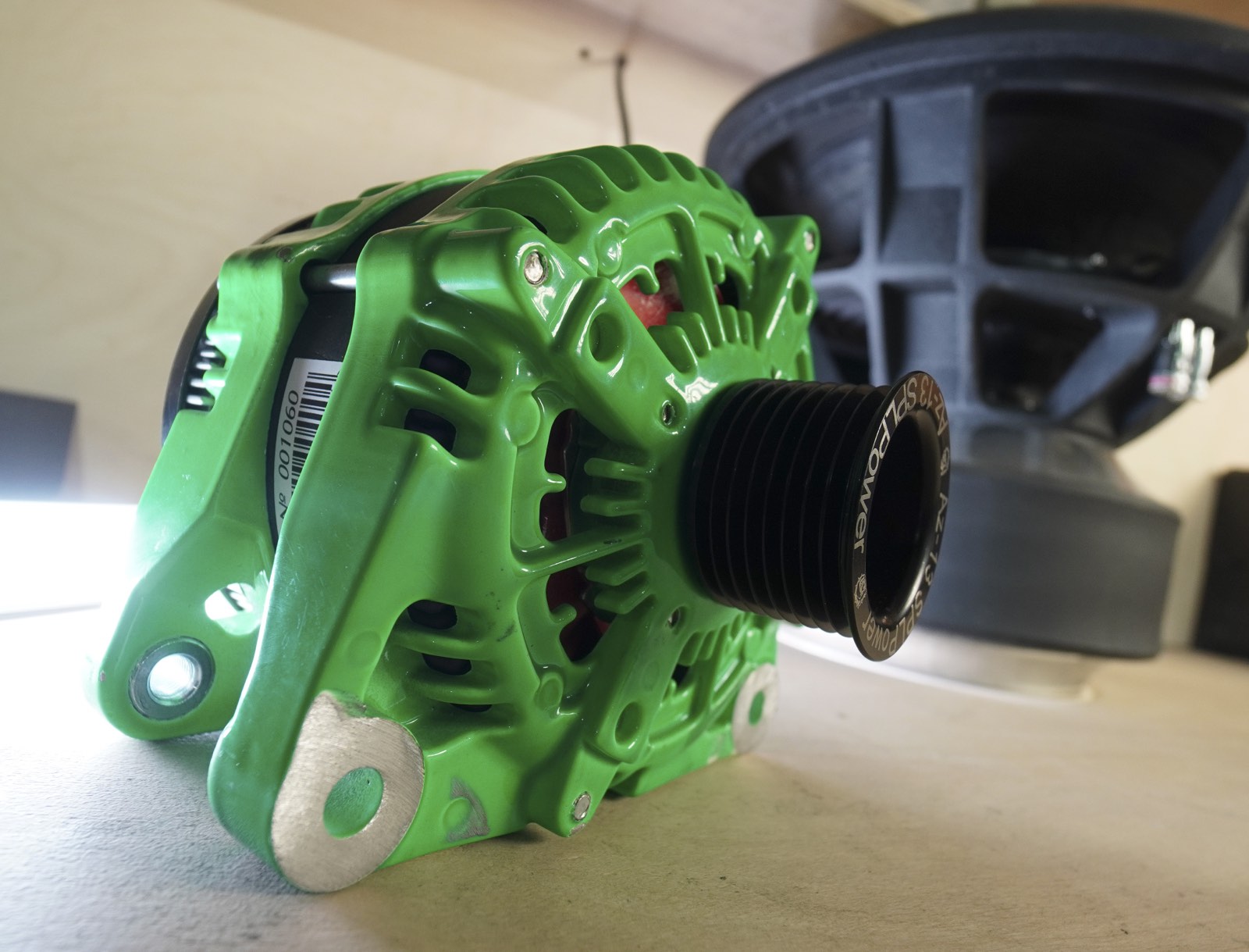 Питание, а именно генераторы. Два генератора по 370А - идут на питание аудиосистемы. Они отвязаны от заводского, по причине = работы на более высокое напряжение около 16V - и заряжать будут литий манганат. Основной генератор отреставрирован, и будет использован только для борт сети автомобиля. Все три гены, установлены на очень мощную плиту, установлены натяжитель и обводные ролики таким способом, что бы обхват шкивов был максимально возможными в нашей конфигурации. Процедура не из простых, лазерный уровень, юстировка, выбор длины ремны, варианты обводных и т.д.... но всё получилось ! Поэтому временно вопрос с питанием закрыт.