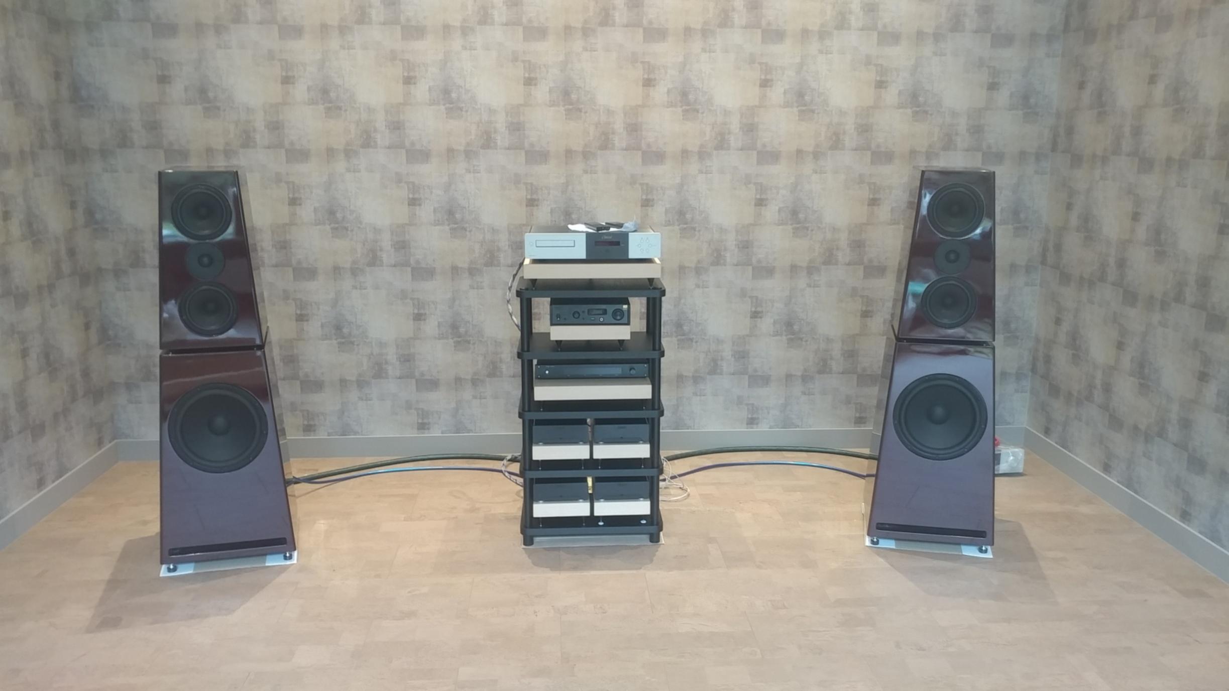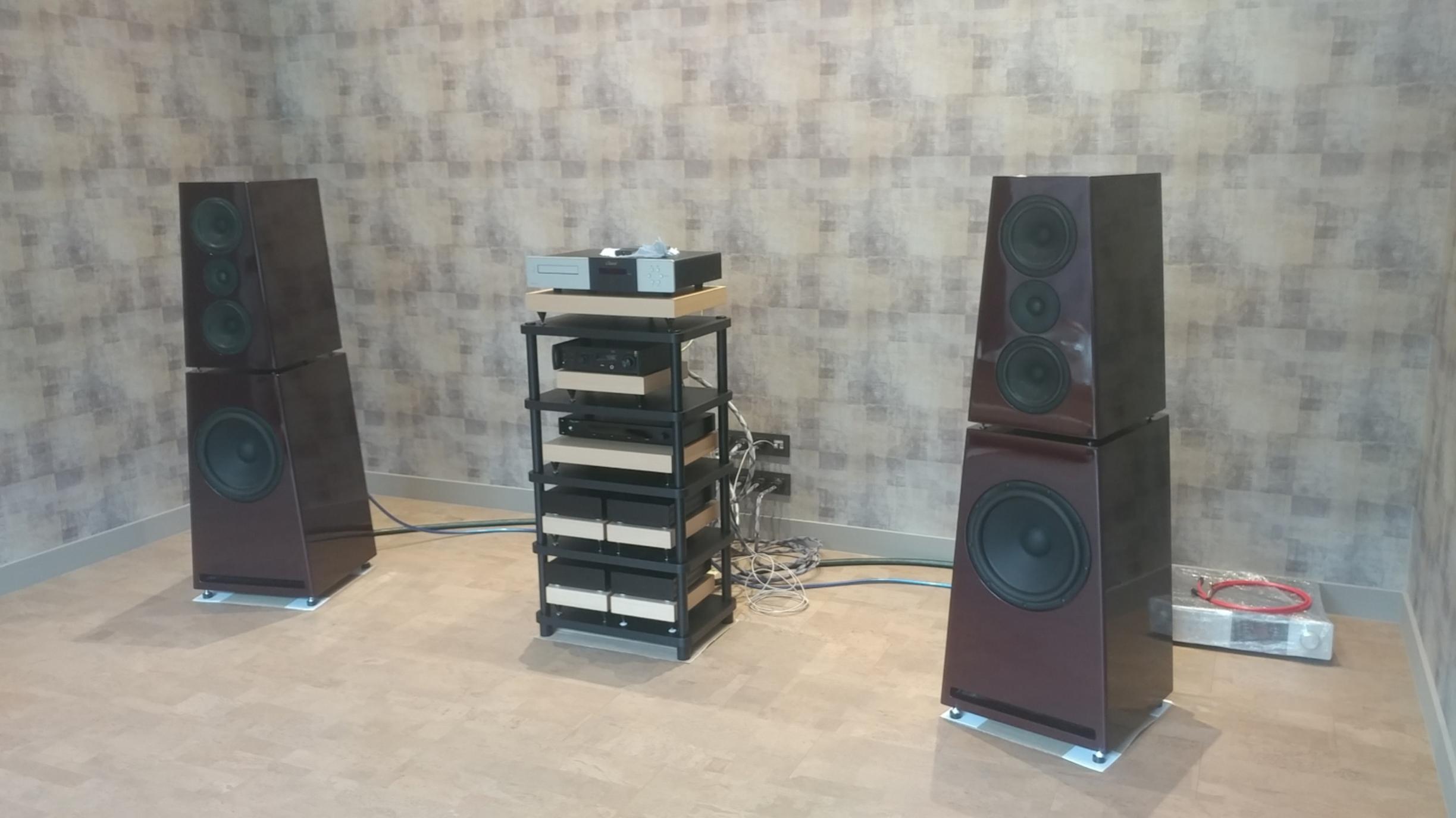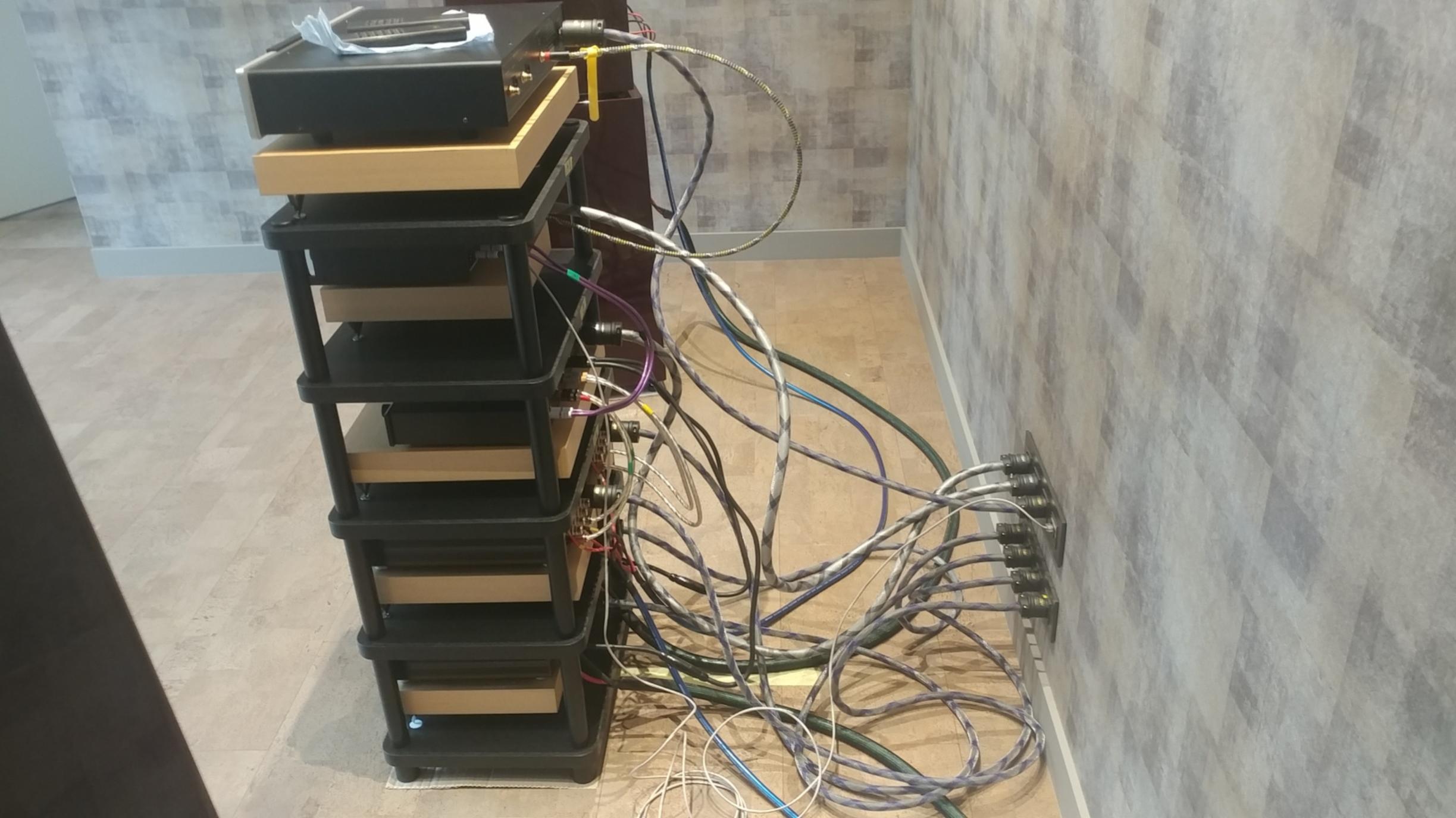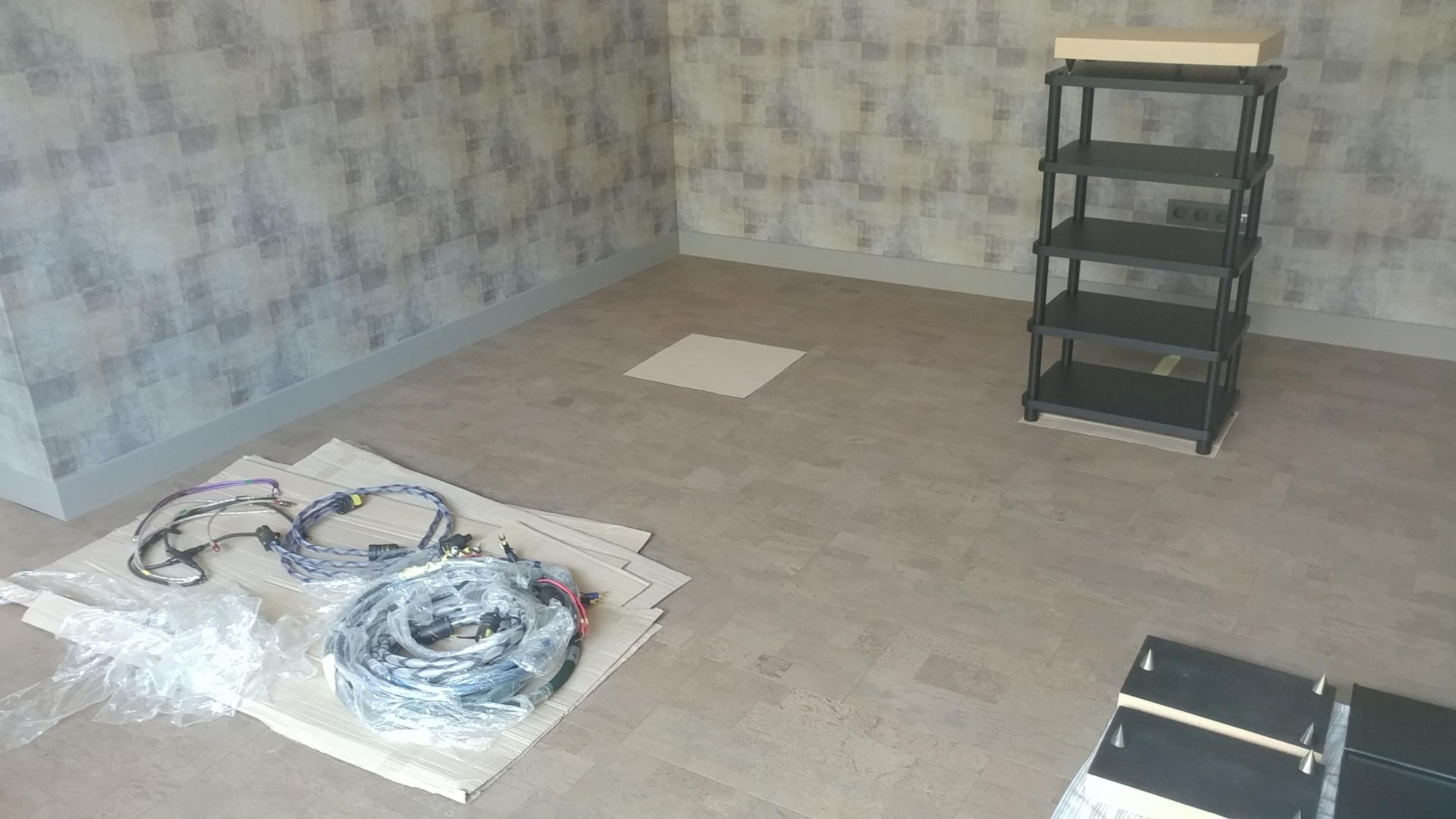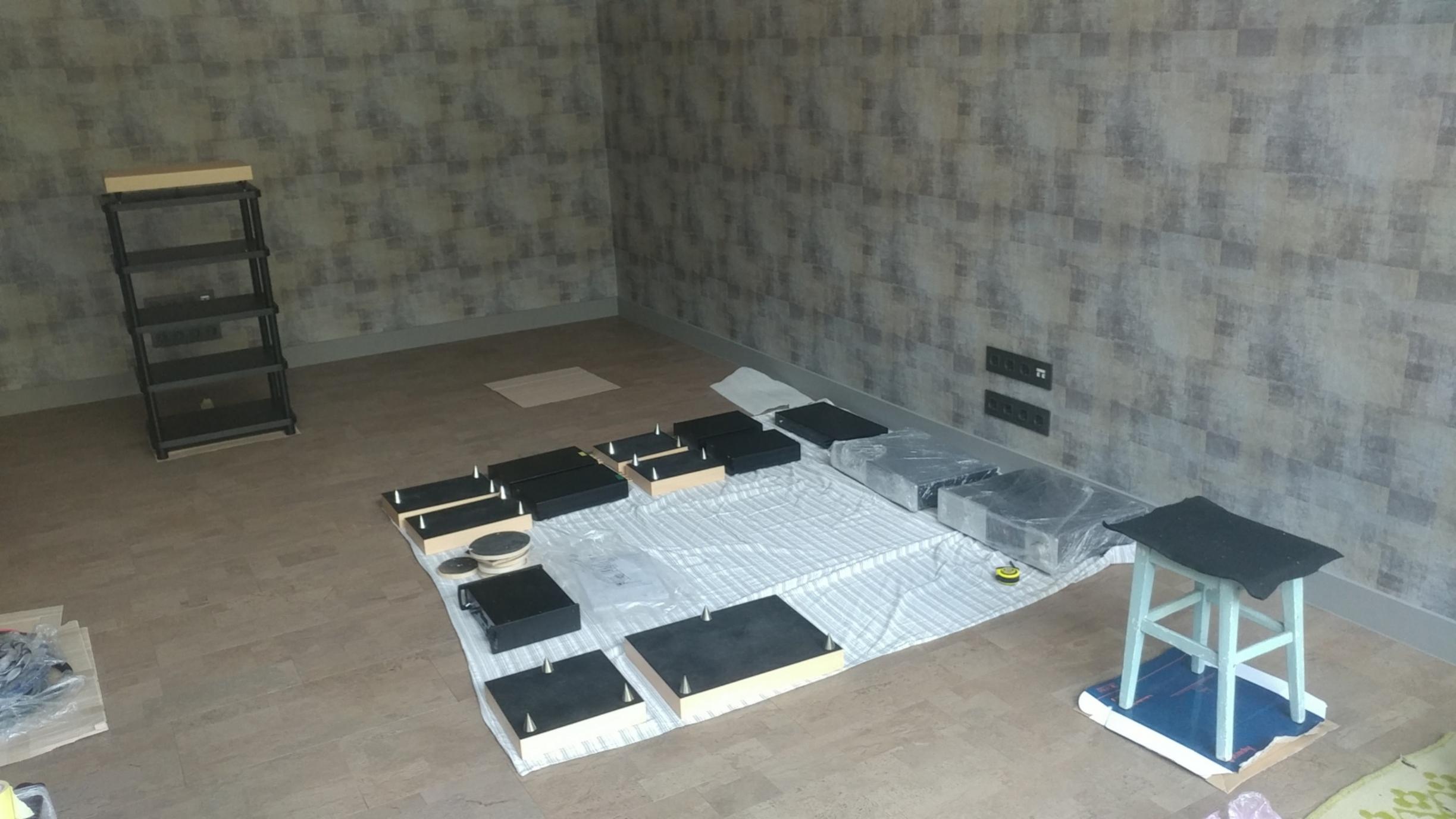 И этот день настал!! Аппаратура вся перевезена ( а это тоже не так просто, тяжелая, громоздкая, отполированные поверхности и др...). Началась расстановка, сборка и монтаж....медленно, но качественно. Комната для прослушивания пока пустая, поэтому первое включение будет интересным только с точки зрения работоспособности, исправности всех компонентов...Все таки почти 1.5 года была на хранении. Интересная особенность комнаты....пробковый пол....даже не знаем, что и как....