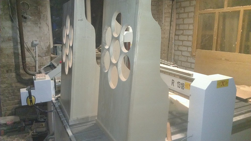Открытая система на 5-ГДШ по 7 шт. в каждую. Играли от источника MD плеер Sony MZ-R55, усилитель Fisher CA7000 Материал: Лицевая часть - ясень, 20 мм. Верх и низ - ясень, 32 мм. Боковые стенки - шпонированная фанера 10 мм. Окраска красителем Herlac, Лак полуматовый - Sirca Далее процесс изготовления в фотографиях. |