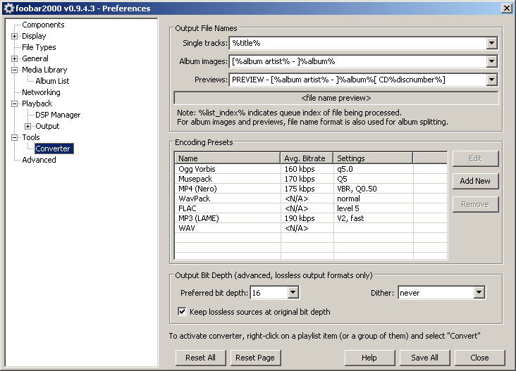 Для того, что бы разбить этот файл диска на треки используем программку CUE Splitter С ее помощью открываем CUE файл, который должен быть рядом с WAV файлом. А дальше Вам уже подскажет интуиция ![]() P.S. и еще один важный момент, если CUE Splitter не видит WAV файла, который находится рядом с CUE файлом, то откройте CUE файл в блокноте и проверьте верно ли указано расширение для WAV файла (при необходимости исправьте и сохраните). Так как очень часто бывает, что в CUE файле указано расширение не WAV, а например, APE или FLAC. Последний раз редактировалось Cobox; 06.12.2010 в 12:42. |