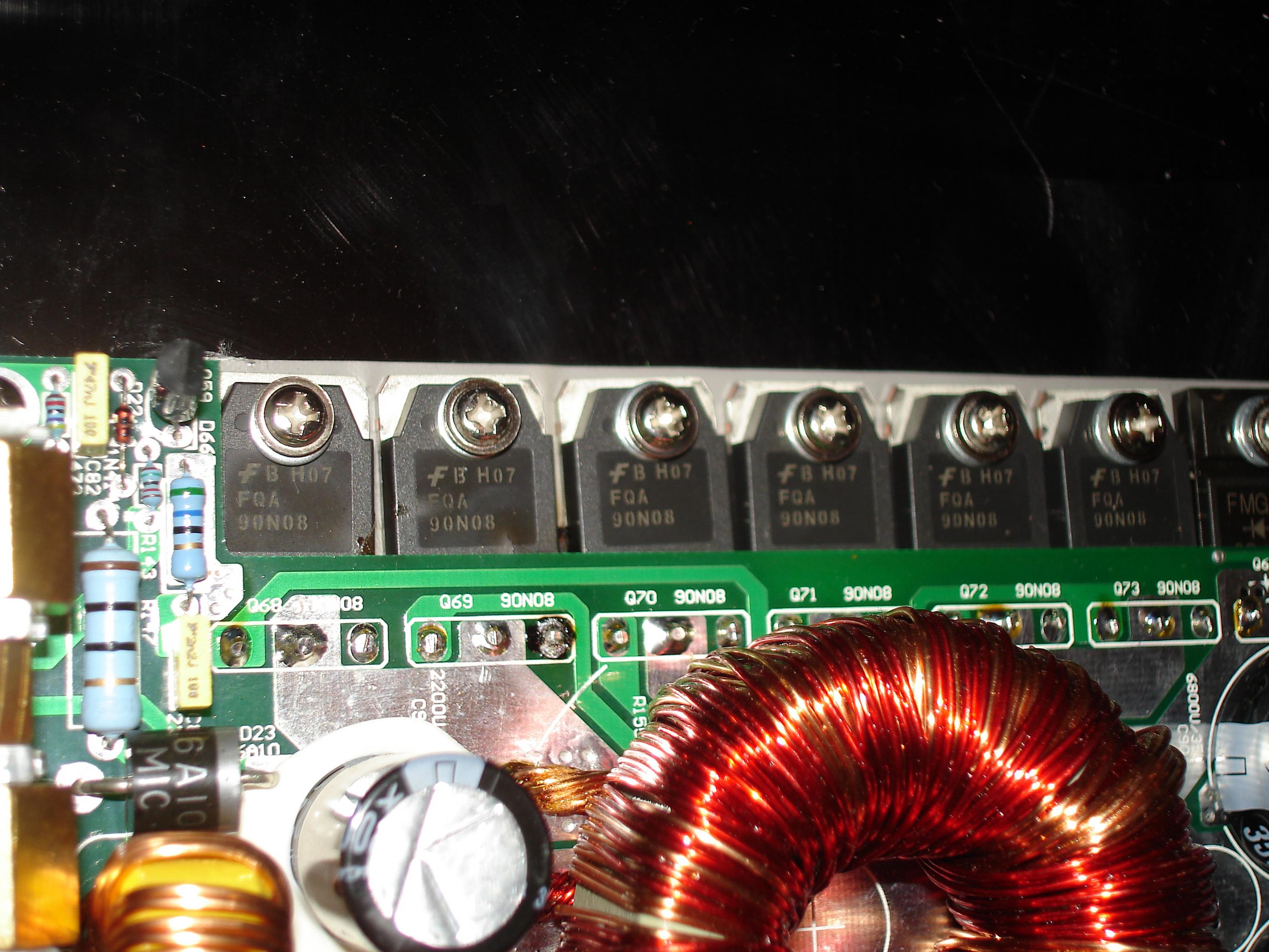 Увеличения номинала не было, просто поставил такие как были с завода, короче отдал усилок товаричу который чуток шарит, разобрал, сказал что 3 транзюка в одной обмотке сгорели, может и все четыре, четвёртый прозванивается, но неизвестно рабочий или нет, сказал что в таких случаях слетают все. Из-за того что на клемах динамика конденсат такое могло быть? Да и в принципе погода у нас не так чтоб такой конденсат был. Хотя кто его знает. На массу провода не контачат нигде вроде. Завтра ещё раз всё попрозваниваб для точности.
