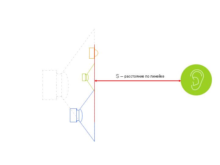 2)представить это можно, и картинка вроде бы логичная: все что надо для счастья это ввести задержки излучателей между собой как по картинке в зависимости от линейкой измеренных параметров. Но есть скрытый момент-реально: -ВЧ,СЧ,НЧ как правило имеют разную чувствительность, разную скорость отклика на импульс усилителя, и разную скорость нарастания сигнала в разных усилителях на фронт на каждый излучатель в отдельности. -по этой причине вводить указанные линейкой измеренные расстояния есть смысл при одинаковых параметрах излучателей ВЧ-СЧ-НЧ на фронт и одинаковых параметрах сигналов усилителей на эти компоненты Меня терзают смутные сомнения по поводу данной методики именно по вышесказанным причинам. Коротко пример: дальше мидбаса расположенный резкий активно орущий СЧ придется задерживать именно на слух а никак иначе. |