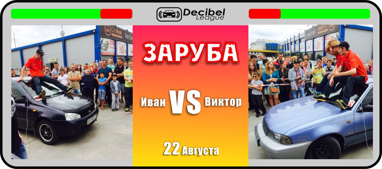 Результаты соревнований "Decibel League" / "Decibel Battle" / "Decibel Volume" + предварительный видеоотчет. Формат "Decibel League" Класс: Новичек I место - Cеменцов Сергей 143,2db | 442 Ватт II место - Магденко Андрей 142db | 493 Ватт III место - Маркив Павел 141,9db | 440 Ватт IV место - Команда "Цукуры" Александр 140,9db | 444 Ватт V место - Лысун Сергей 140,3db | 470 Ватт VI место - Шатохин Олег 138,3db | 460 Ватт VII место - Трофименко Олег 132,6db | VIII место - Чуприна Владислав 131,6db | Класс: Любитель I место - Кривой Виктор 146db | 884 Ватт II место - Суворов Антон 141,3db | 880 Ватт III место - Следзь Юрий 137,2db | 588 Ватт IV место - Гриценко Артем 136,4db | Класс: Специалист I место - Пушкарев Иван 149,4db | 1982 Ватт II место - Барабаш Евгений 147,9db | 1992 Ватт III место - Долгинов Андрей 144,6db | 1978 Ватт IV место - Шелест Алексей 139,2db | 517 Ватт Класс: Профессионал I место - Смарыгин Дмитрий 150,4db | 3895 Ватт Класс: Экстримал I место - Федоров Ярослав 152,9db | II место - Загоруйко Иван 147,6db | III место - Синягаев Иван 147,5db | Формат "Decibel Battle" Класс: 119,9 Победитель - Мисюкевич Андрей Финалист - Команда "Цукуры" Александр Класс: 129,9 Победитель - Команда "Цукуры" Олег Финалист - Барабаш Евгений Формат "Decibel Volume" Класс: Street I место - Магденко Андрей 116,8db | II место - Мисюкевич Андрей 109,4db | III место - Кривой Виктор 109db | IV место - Следзь Юрий 108,8db V место - Федоров Ярослав 108,4db | VI место - Пушкарев Иван 107,3db | VII место - Барабаш Евгений 98,1db | Класс: Street + I место - Долгинов Андрей 112,3db | II место - Смарыгин Дмитрий 110,3db | Заруба Иван VS Виктор Победитель - Пушкарев Иван Финалист - Кривой Виктор |