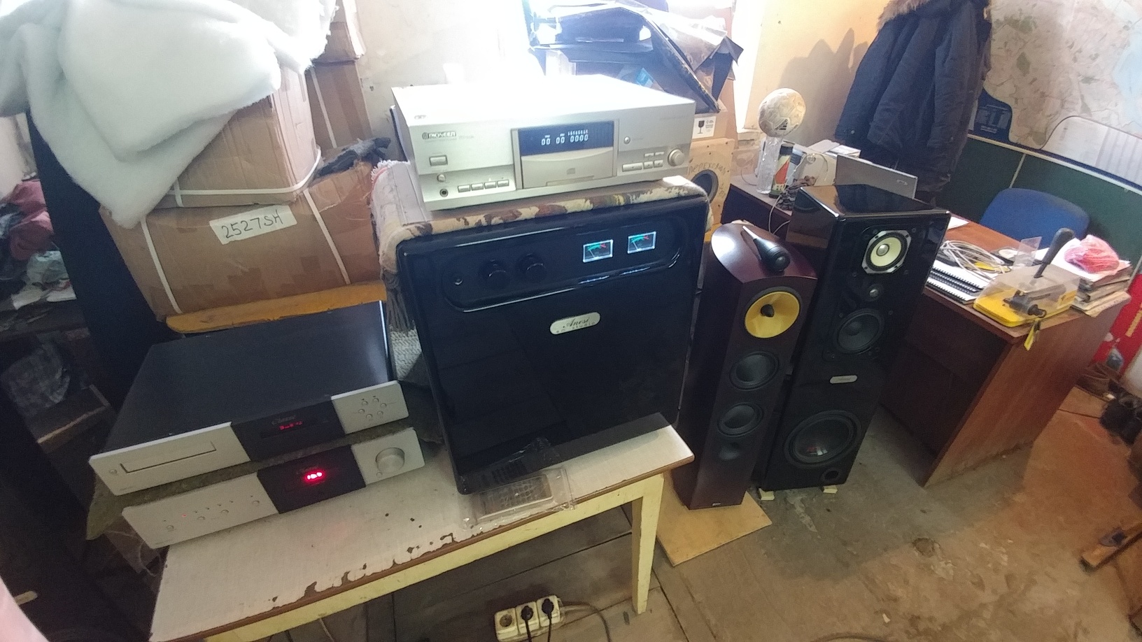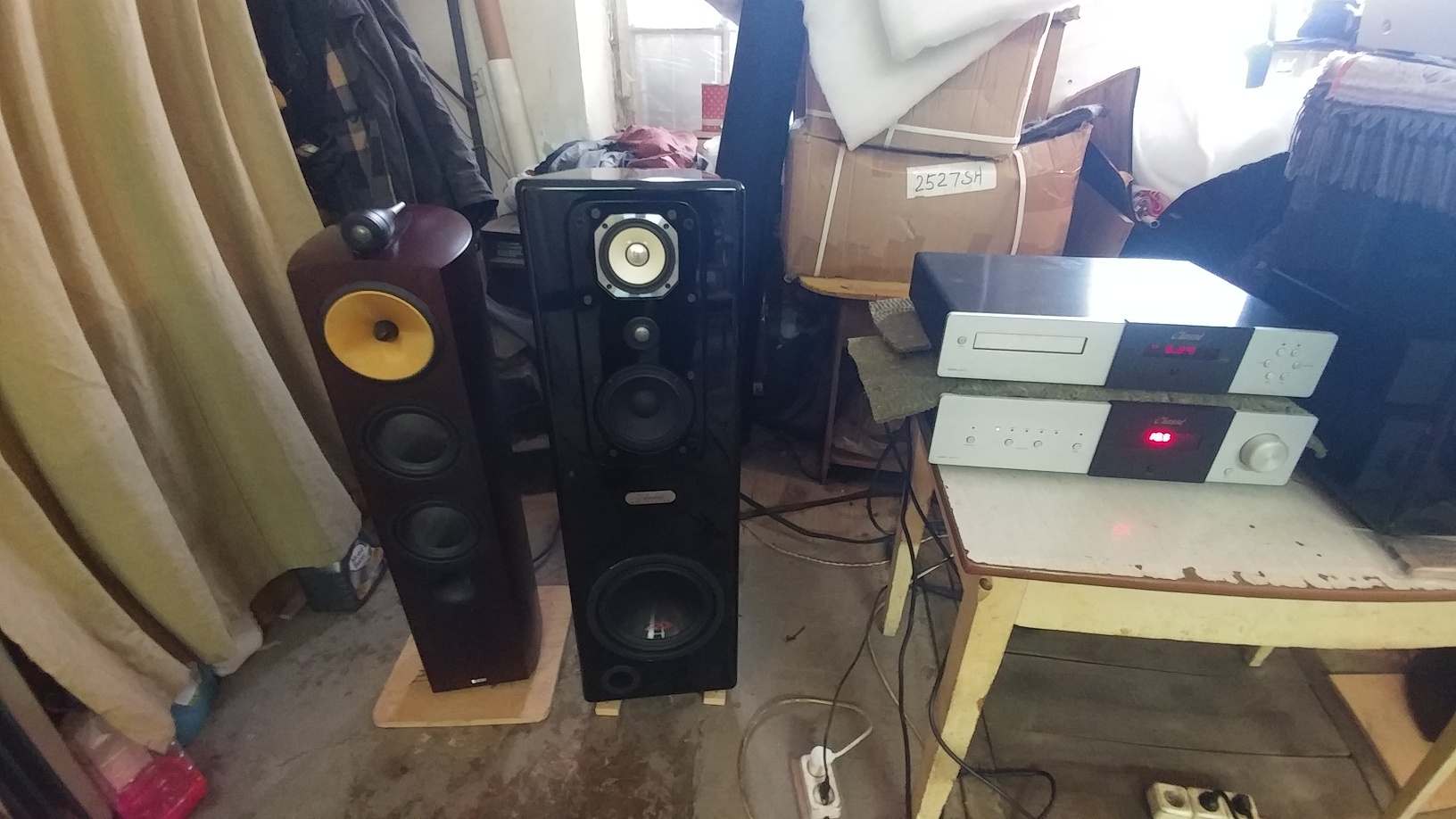 Ну что, удалось осуществить то, что планировали: сравнить прямым прослушиванием и сравнением нашу систему и систему B&W 804 Nautilus ( а не Diamond, как я писал ранее ) , усилитель Classe CAP-151, СД проигрыватель Classe по балансным входам/выходам, кабели Audioquest. Прослушивали сначала сами, втроем, потом вместе с хозяином аппаратуры... Конечно расстановка аппаратуры, питающие кабели...не фонтан..((( Но одинаковое для обеих систем... Я несколько дней назад прослушивал эту систему дома, у хозяина.....на месте постоянной установки... Почему то здесь у нас, мне показалось , система звучала несколько лучще, чем дома... Чуть позже поподробнее...