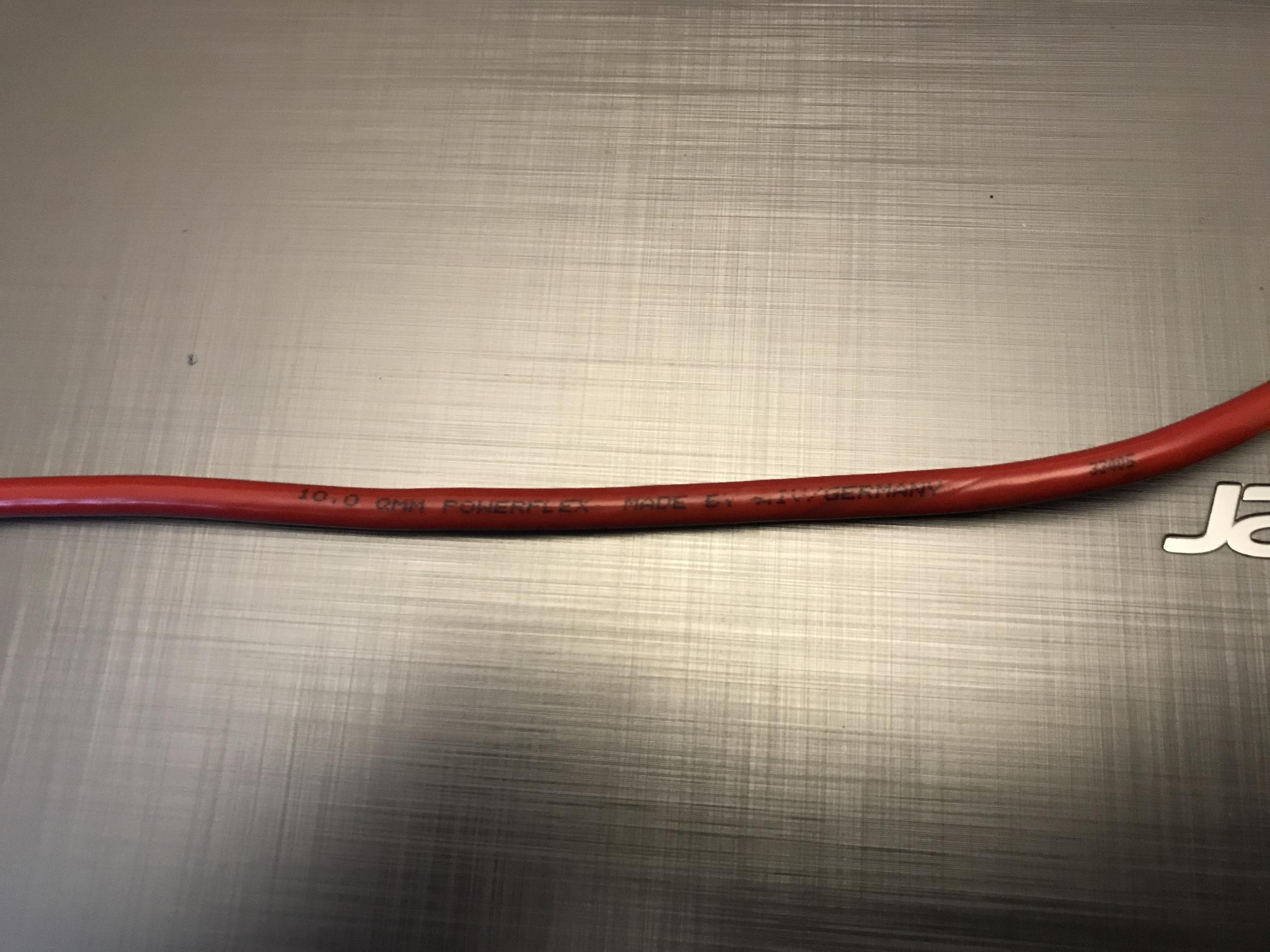 Продам готовый к установке силовой кабель с предохранителем сечением 10 кв.мм длинна красного 4 метра чистая медь , длина прозрачного 1метр 20см. луженая медь. Производство Германия.
