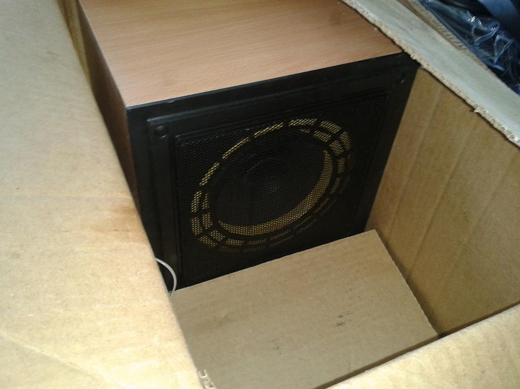 В комплекте с родными колонками (даже шнурки не розматывались).
