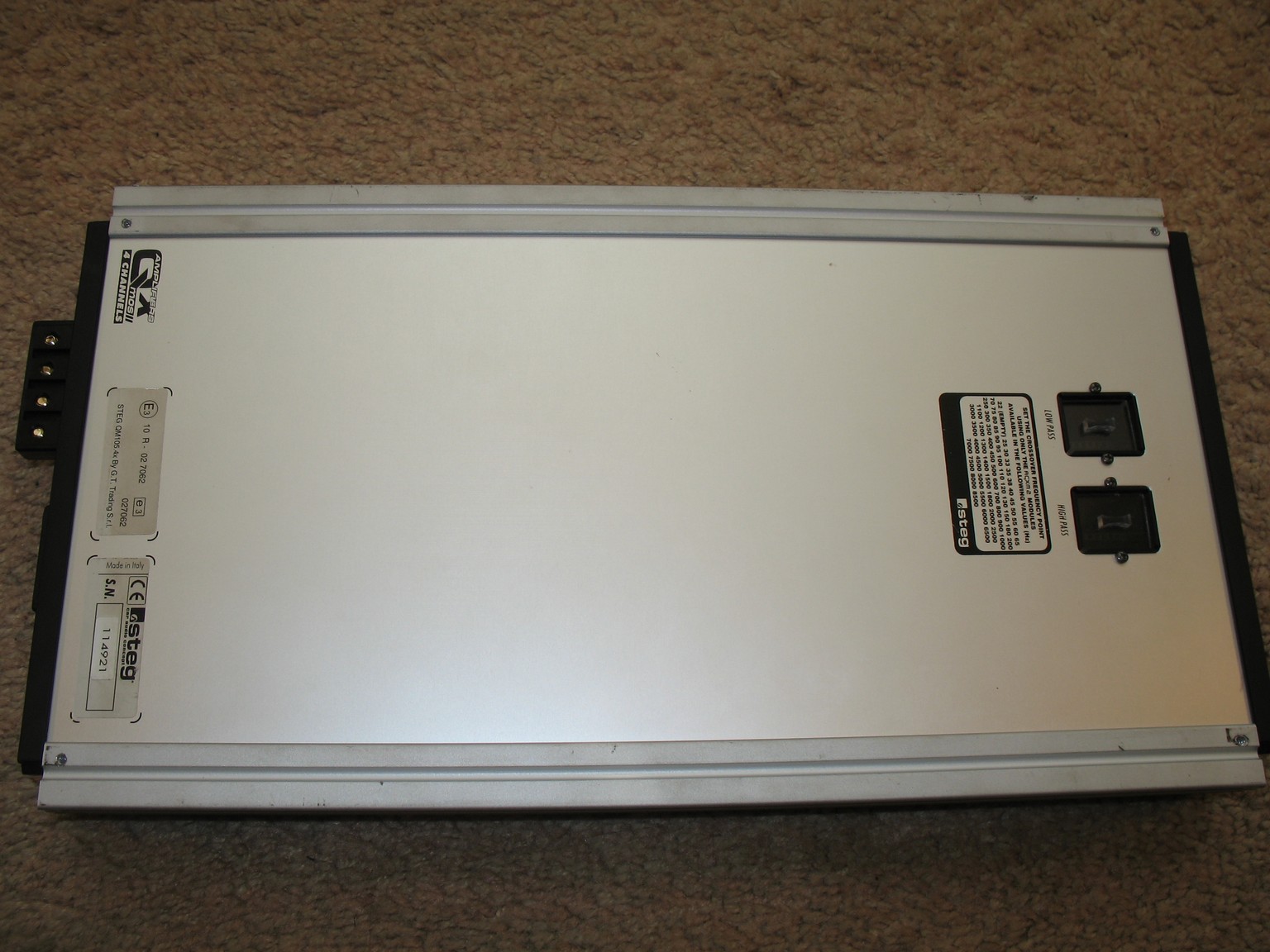 В продаже классный 4-канальный усилитель Steg QM105.4x. Производство Италия.