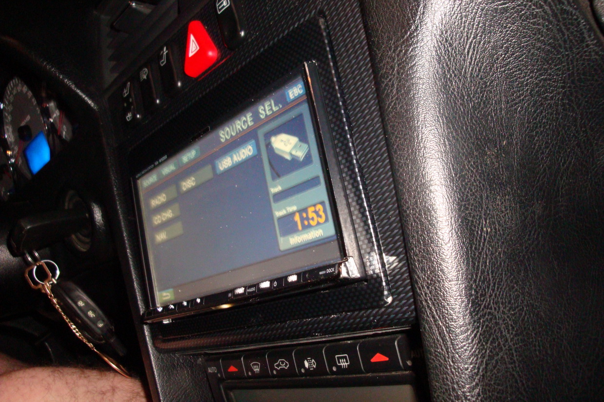 Но перед тем как поставить был проведен маленький твик: Добавлен TOS-LINKна проводочке 5 см вместо дурацкого 4 пинового разъема. Разъем под USB хвост тоже заменен на копютерный от звуковухи. Выпаян внутренний усилитель (об него чуть не обжогся греется даже без нагрузки). На задней стенке головы подпилены радиаторы чтоб уменьшить монтажнуя глубину (в результате выиграл 1см). Теперь стоит почти за подлицо более апрятно но так как морда у него чуть больше на 2-3 мм в ширину надо переделать свою переходную рамку. Апарат по приятней картинкой, интерфейс пока еще не привык но но это дело времени, оч понравилась хард кнопка на морде "*" которая быстро переключает визуализацию на навик .Но одно просто взбесило - я разачаровался звук по оптике идет только с CD\DVD привода, а со встроенного USB по AI-NET ну и как их теперь называть .И мой чейнджер CHA-624 в меню источников почемуто "USB" завется а не чейнджер. |