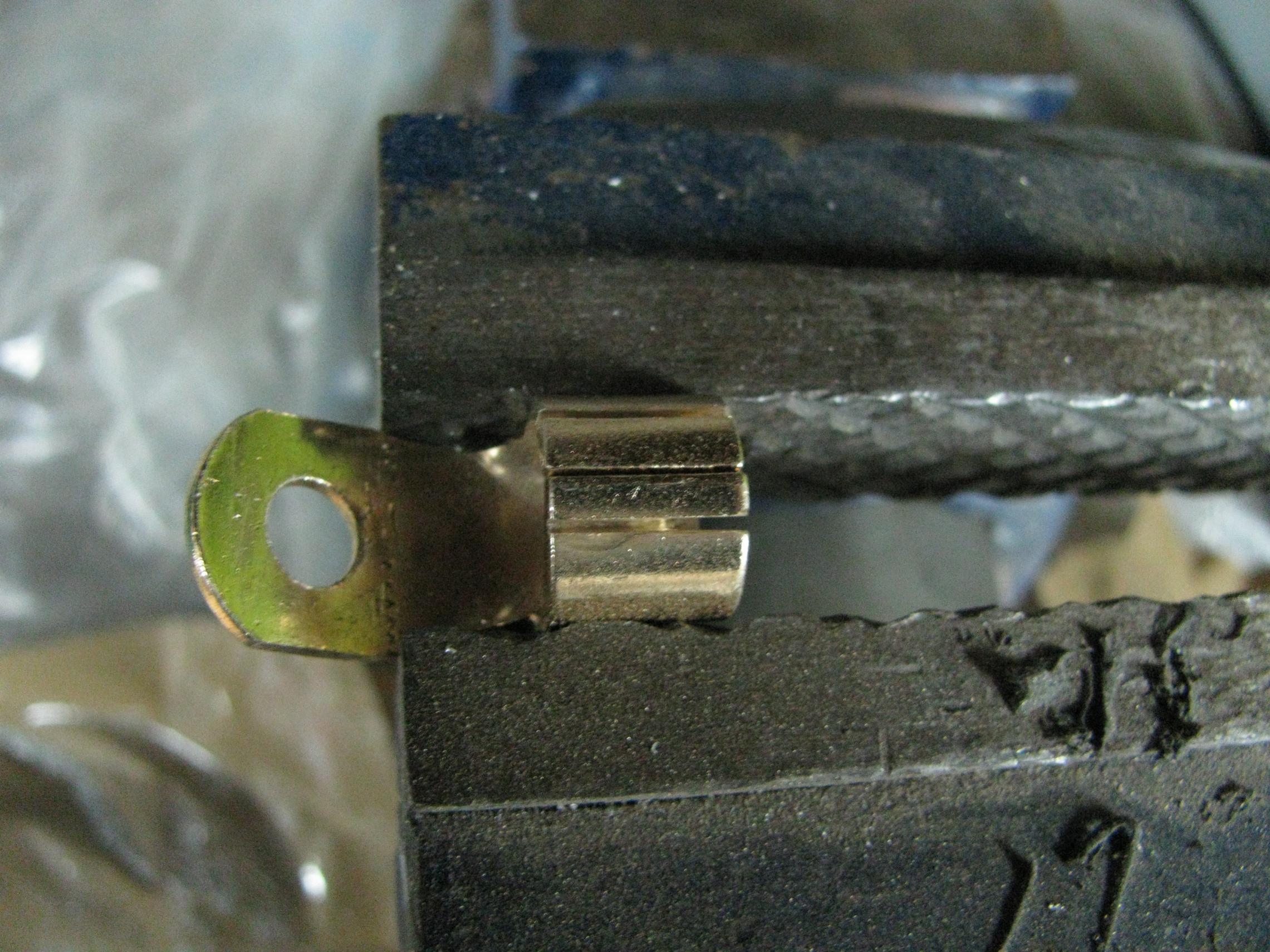Плюсовую клейму сделал по этой технологии http://autozvuk.org/forum2/showthread.php?t=15560, спасибо nik_on_off, за подсказку, минусовая латунная, уменьшил в диаметре, чтобы перед пайкой плотно об жать на проводе...