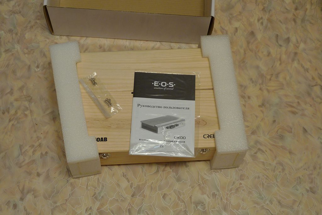 Усилитель E.O.S. Е-150АВ, одна штука, абсолютно новый, полный комплект. Включался только для проверки и сравнительного прослушивания. На удивление неплохой агрегат - если бы влез - поставила бы себе. Но не прошел по вертикальному габариту.