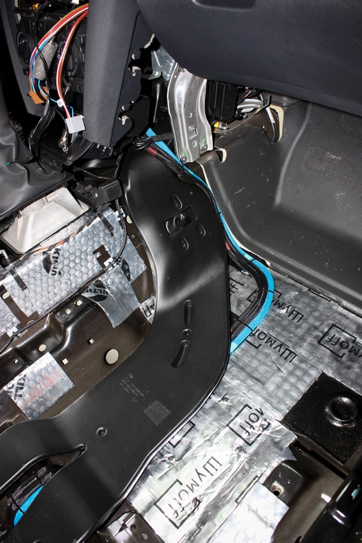 Вкратце опишу что куда. Сила - 2 протяжки Audiotechnik Dietz 50 кв. мм до дистрибьютера, с протяжкой проблем не возникло, несмотря на то, что виниловая оплетка достаточно жесткая и изгибу кабель поддается очень туго. В багажник перешел через штатные отверстия в ступеньке багажника, вот тут наклеил кусочки вибры по контуру отверстий, чтобы предотвратить пробоя изоляция кабеля, ато будет бум и автозвуку. Силу к металлу крепил на площадки под стяжки, которые в свою очередь сажал на гермет. И пока гермет подсыхал, распаял 3 пары межблоков. Кабель Clarity 5000, разъемы Нойтрики 373. Процесс направленной распайки не вижу смысла писать. Кто не знает - курите форум, информации много. Кабель упаковал в змею, проложил по полу по стороне пассажира, и вновь через штатные отверстия в ступеньке перешел в багажник. Держатель преда установил на кожух аккумулятора, немного наклонив его, опять всему причиной ужасная гибкость кабеля. Не сочтите за рекламу, недавно работал с силой Gladen ECO, в работе просто кайф , узлы вязать можно, хоть и сечение 35 кв. было. Про клеммы аккумулятора в другой раз расскажу, это отдельная тема. Смотрите фотки ниже, буду готовить материал по картам