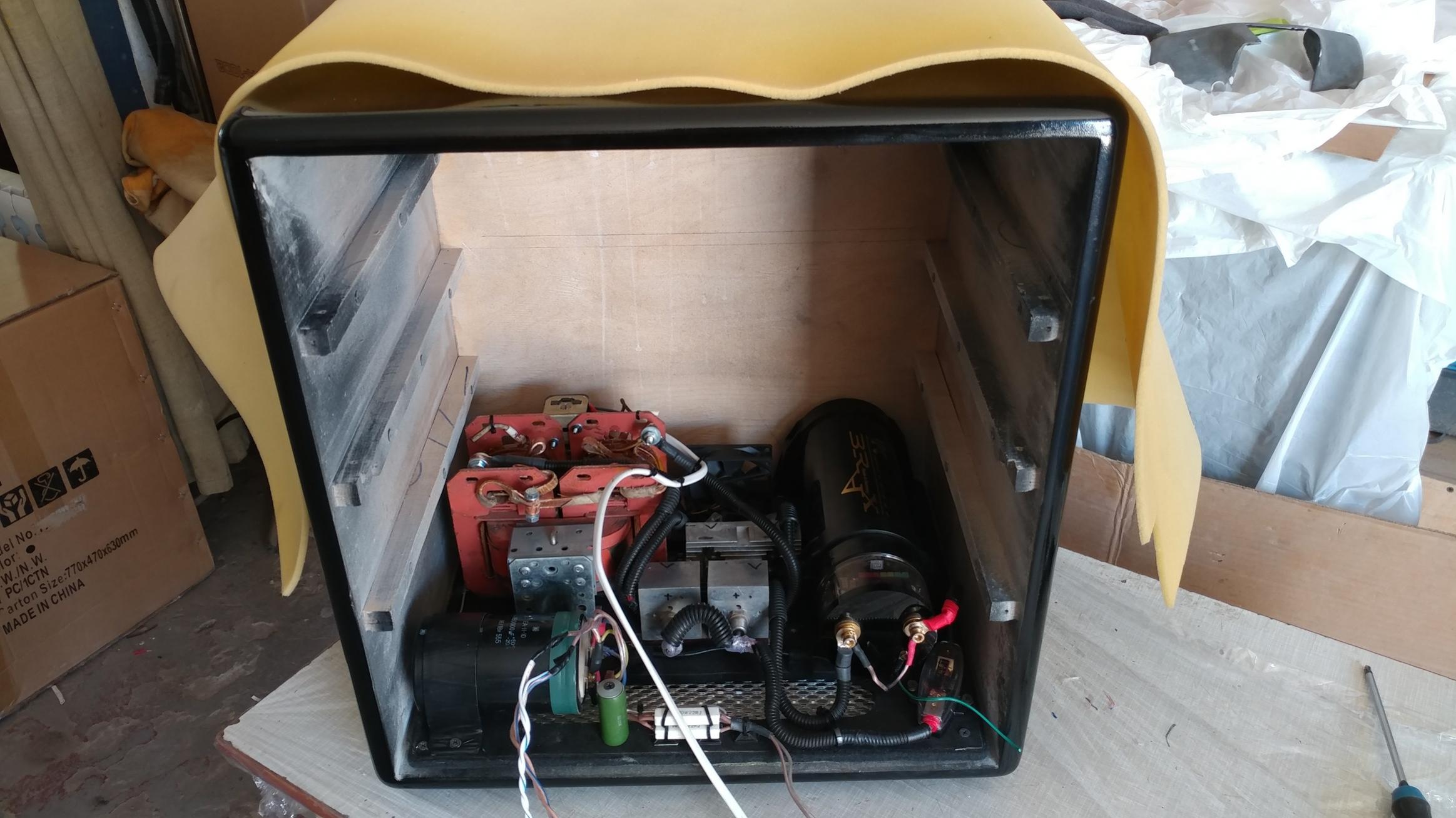 Сегодня наконец то покрасили бокс для аппаратуры....подсохнет за сутки и будем полировать. Закончили блок питания, вентиляцию и охлаждение.