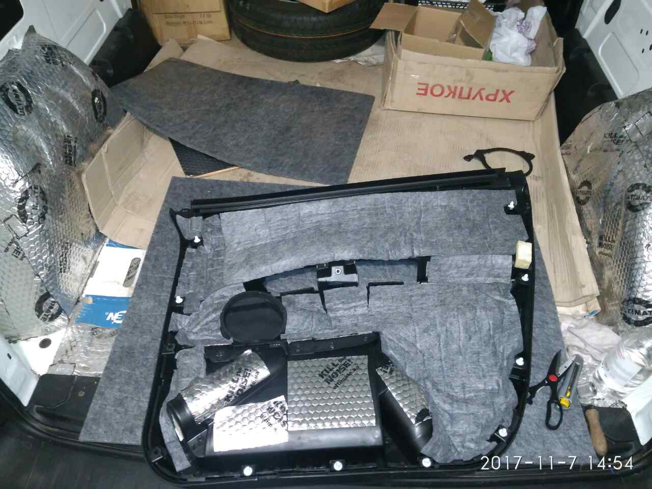 Большие отверстия двери, перед проклейкой виброй, необходимо было закрыть жёстким листовым материалом (аллюминием, фанерой, алюкобондом или т.п. материалом)