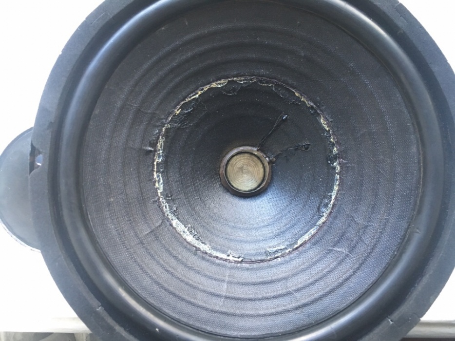 На патроні динаміка, що потребує ремонту помітив, очевидно, пропалену котушкою дирочку.