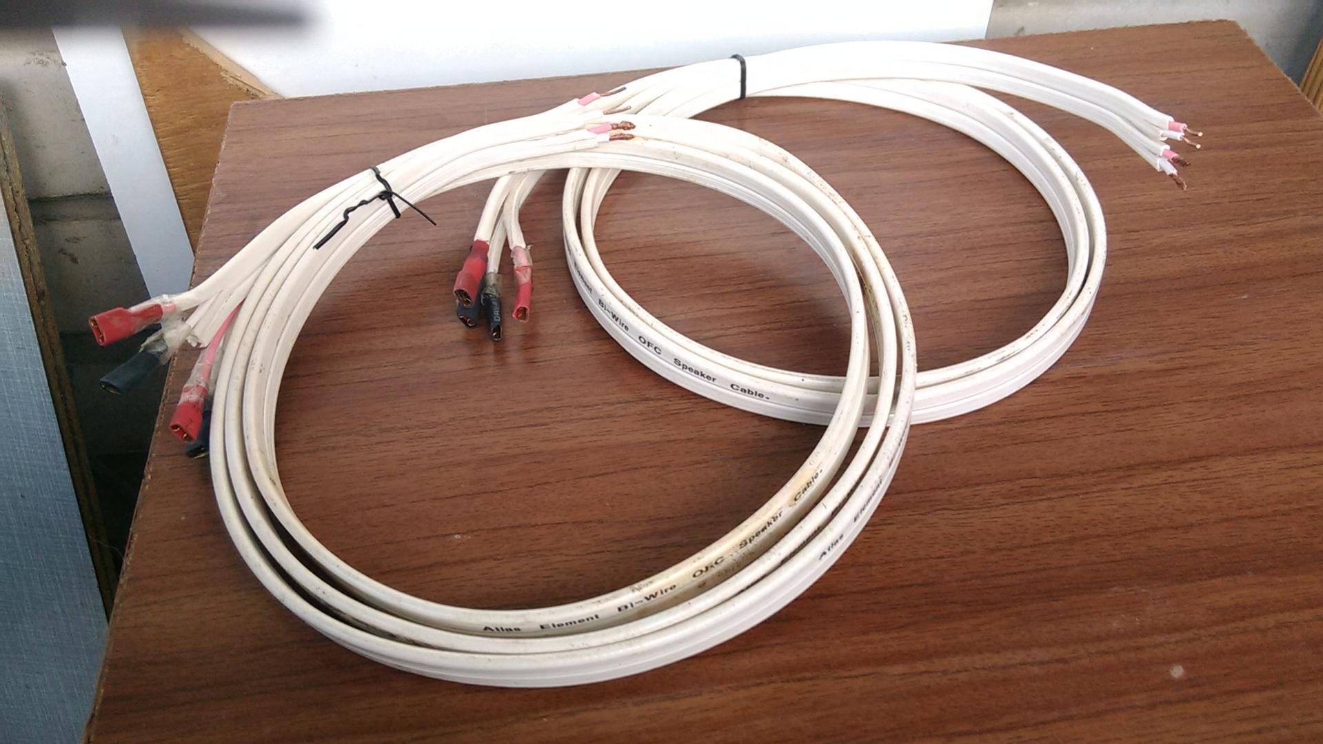 За 50% от цены кабель акустический Atlas Element Bi-Wire (Производство Англия) на конце кабеля припаяны 6,3мм мамы-клемы=8штук, кабелей два куска! 1.4м+1.9м=всего 3.3 метра, цена за всё б.у. 400 грн, 098О3237Ч9, 0665О82ЧО9, отличный вариант для СЧ и ВЧ тракта. В одном проводе идет 4 проводника: 2 моножилы на ВЧ 2х1,1 мм и многожильные проводники на СЧ 2х2мм. Кабель жесткий, держит форму. Причина продажи- ошибся длиной, психанул и купил другой монокабель.