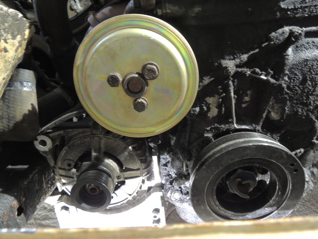 На шкиве коленвала пришлась сточить внешнюю насечки, ибо касается корпуса вентилятора. |