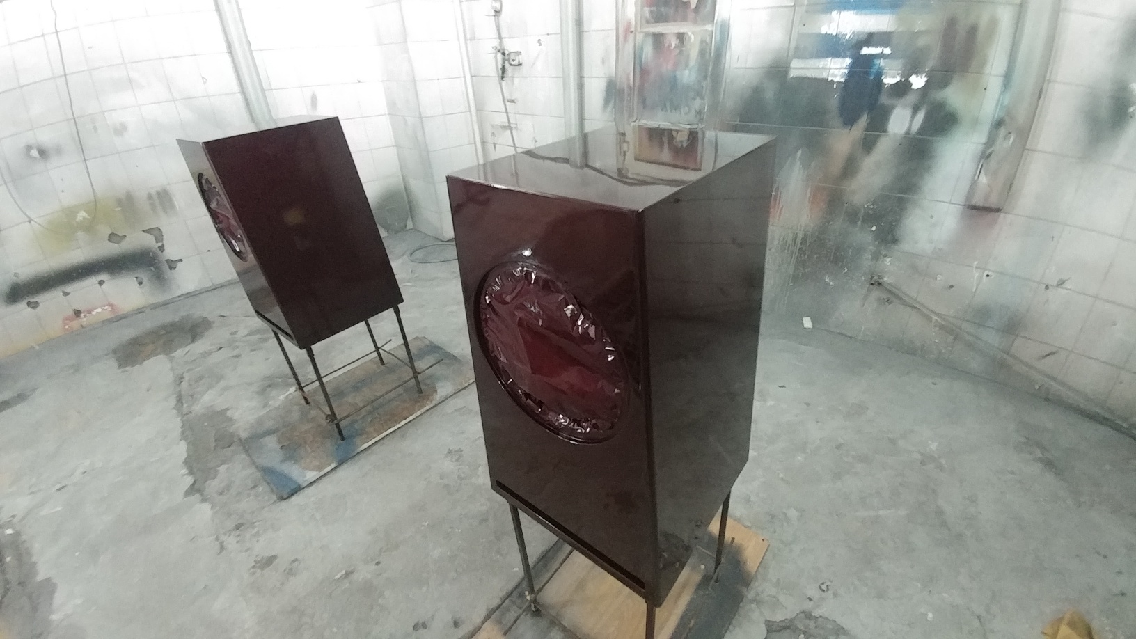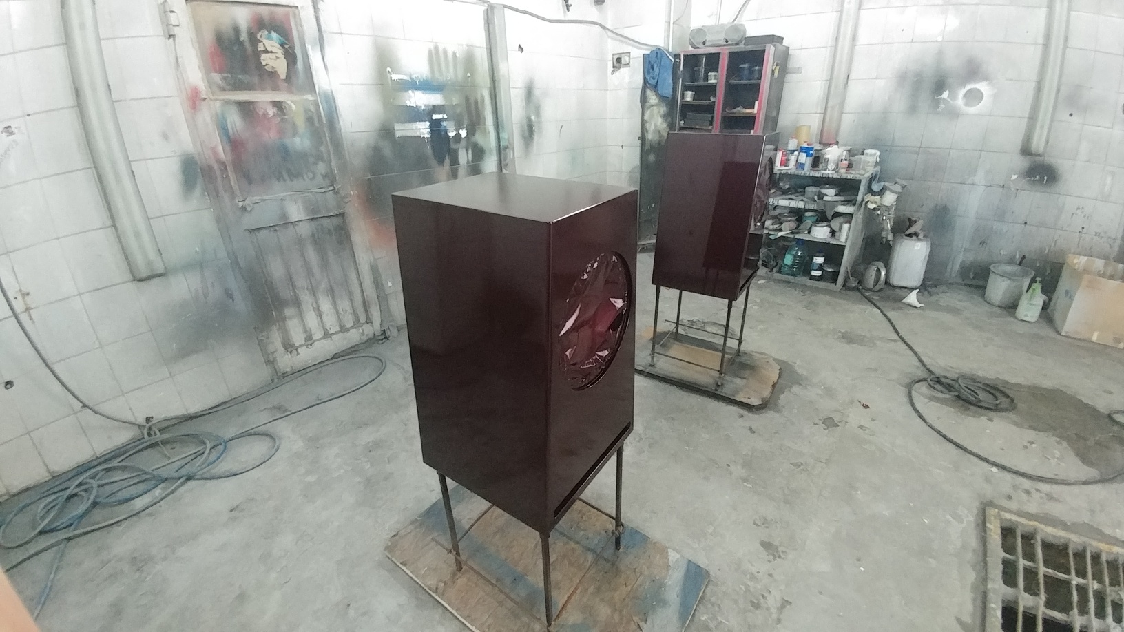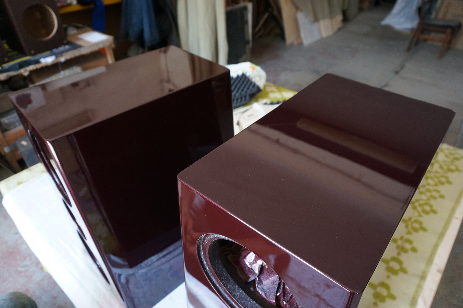 - один корпус ВЧ /СЧ окрашен и покрыт 3 слоями лака, ждет полировки - второй корпус ВЧ / СЧ прогрунтован дважды , отшлифован и готов к покраске и лаку - оба корпуса НЧ первично прогрунтованы Все сохнет.....выдерживаем несколько дней...Никто никуда не спешит!! |