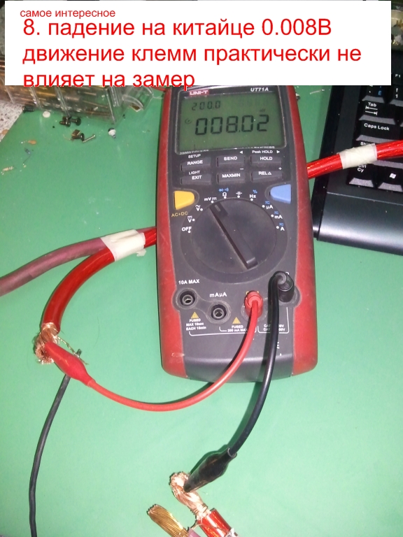 7я фото показыват, что измерение проводится источником тока, и через кабель постоянно течет 10А. тестер меряет падение напряжения на участке цепи.