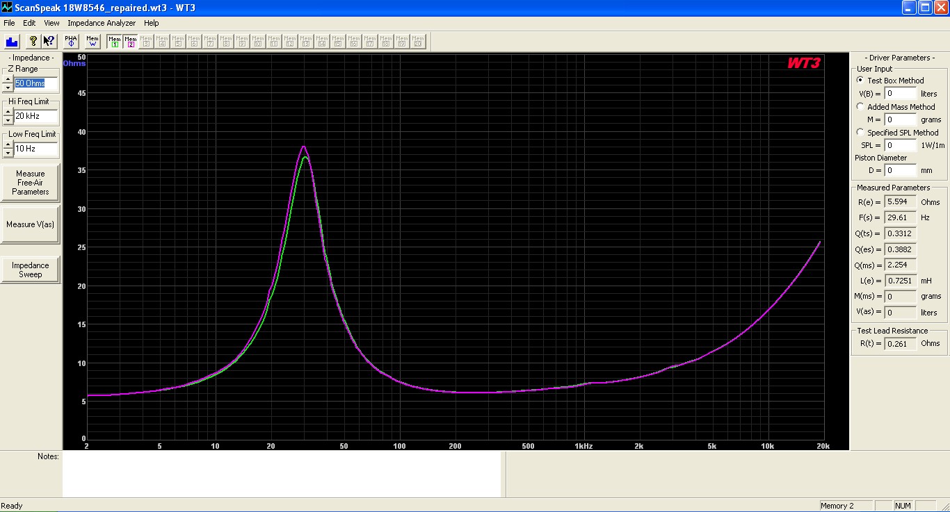 Продам пару кевларовых ScanSpeak 18W/8546 с магнитной системой SD-1. После ремонта. Ремонтировались Костей из Львова. Была заменена центрирующая шайба. При пересылке была повреждена корзина одного из динамиков, поэтому к фланцу корзины было приклеено дополнительное стеклотекстолитовое кольцо.