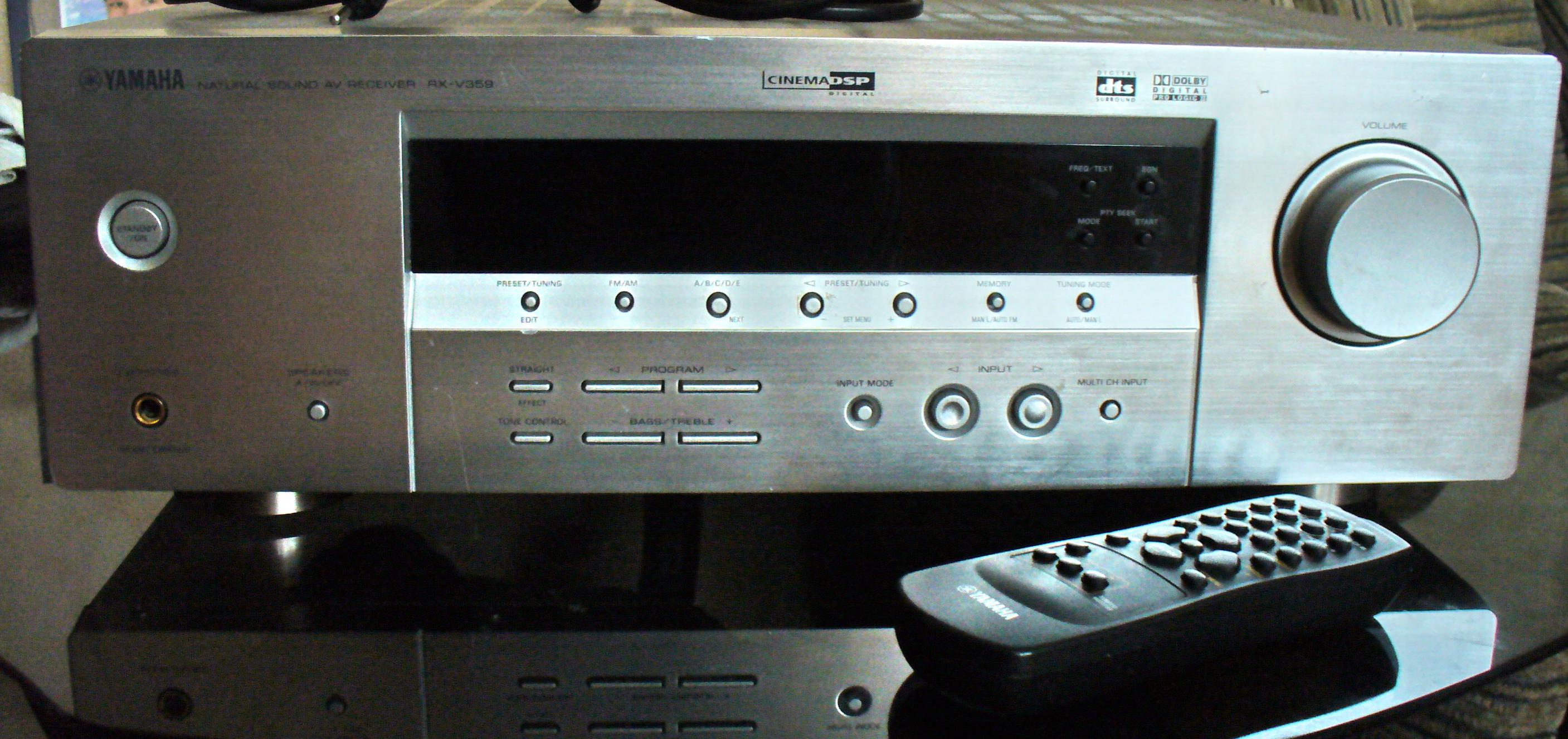 Продам AV-ресивер Yamaha RX-V359 серебряного цвета, состояние отличное, в комплекте: "мурзилка", пульт, антенна.